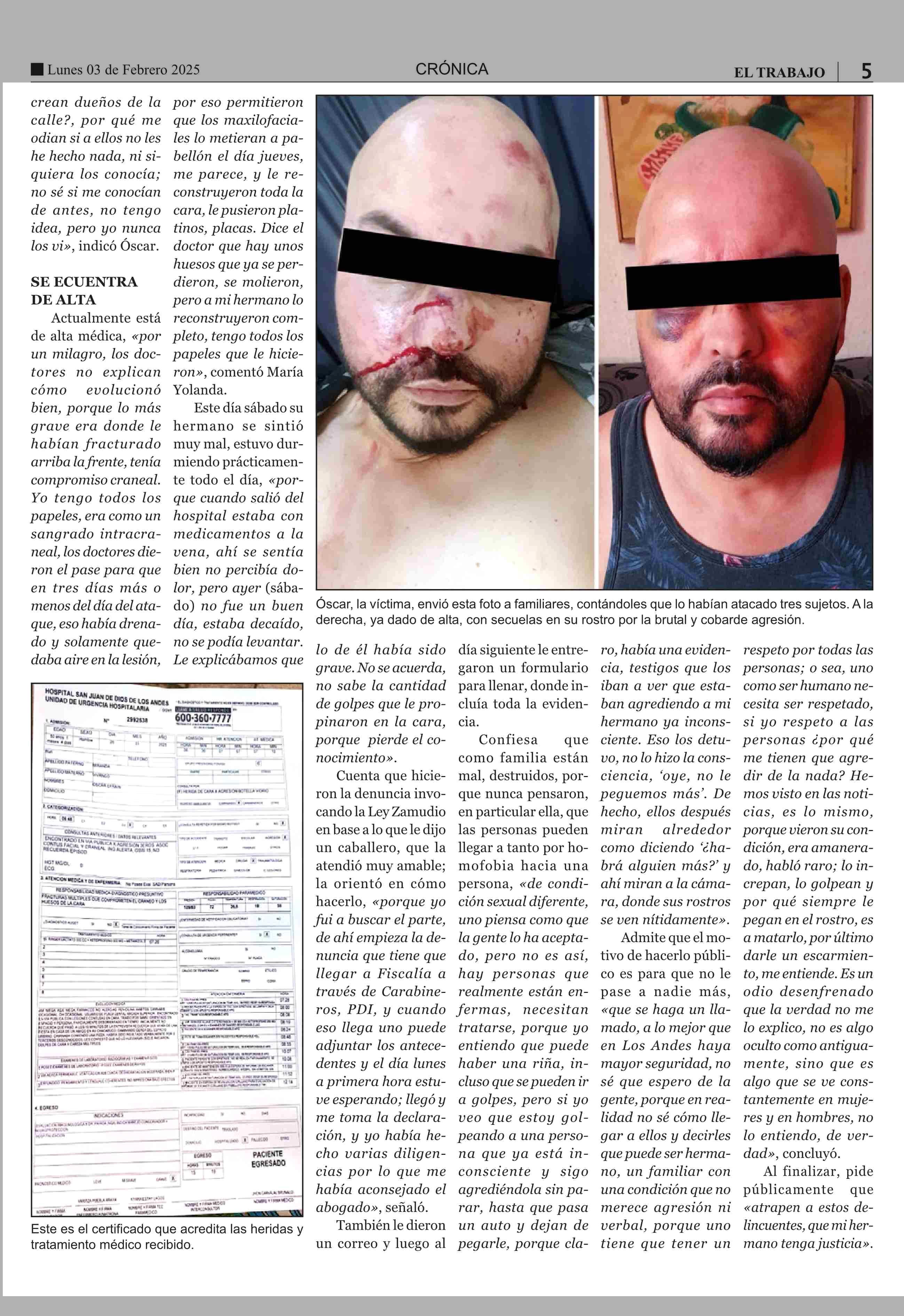 Denuncia grave ataque homofóbico a su hermano en Los Andes 03-02-2025 El Trabajo |