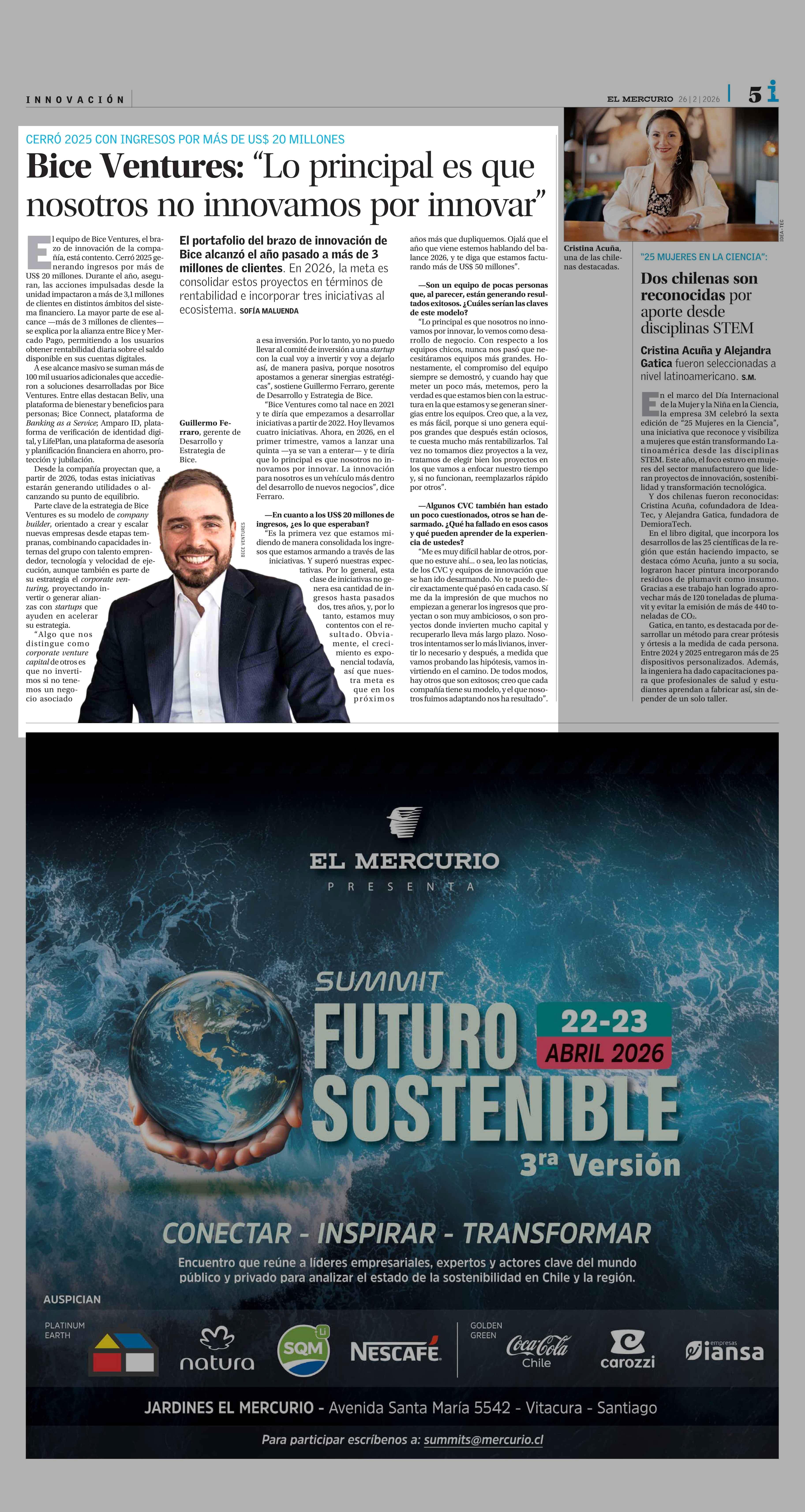 Bice Ventures: “Lo principal es que nosotros no innovamos por innovar” 26-02-2026 El Mercurio |