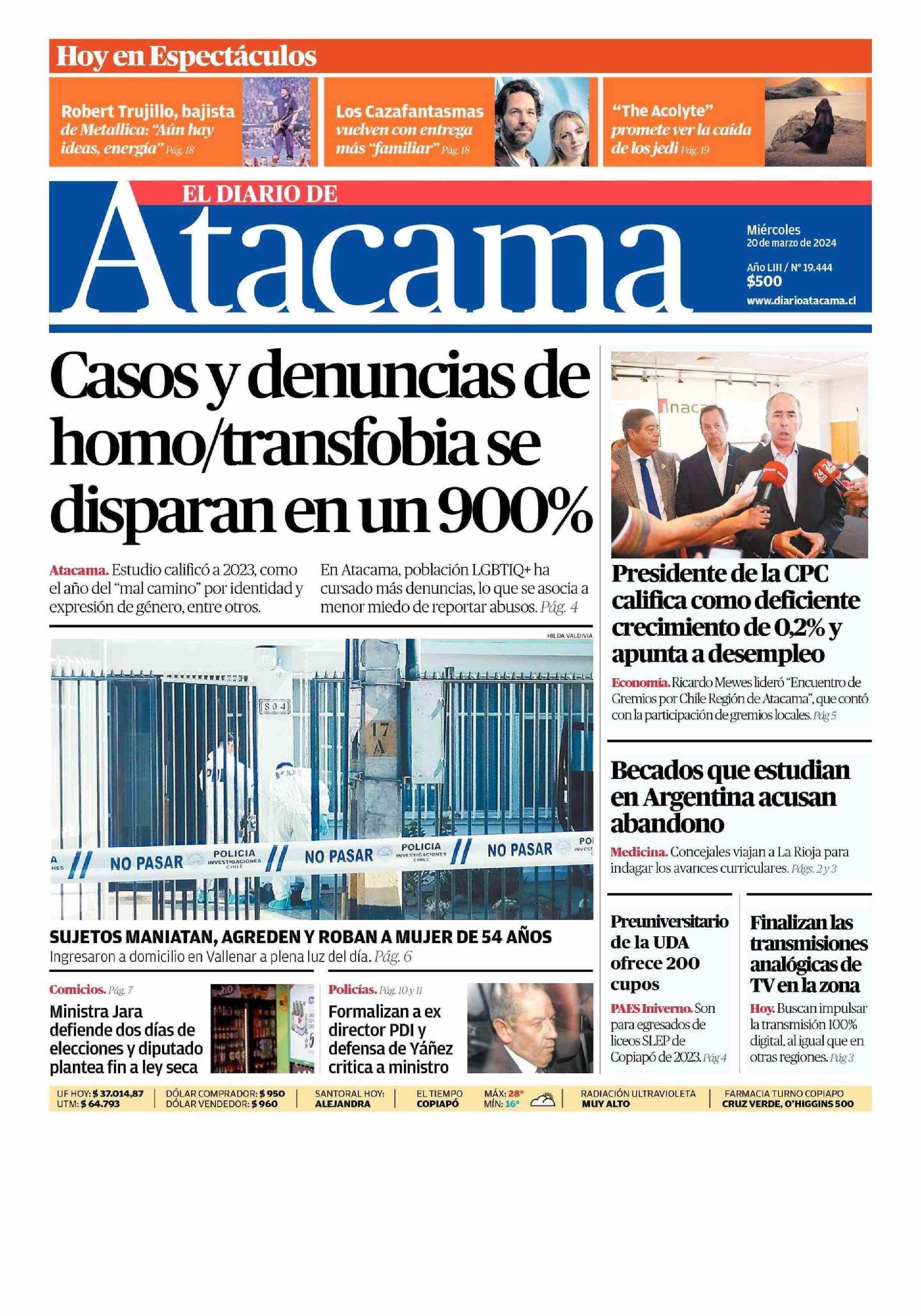 | Fecha: | 20-03-2024 | Sector: | Portada | Región: | Región de Atacama |