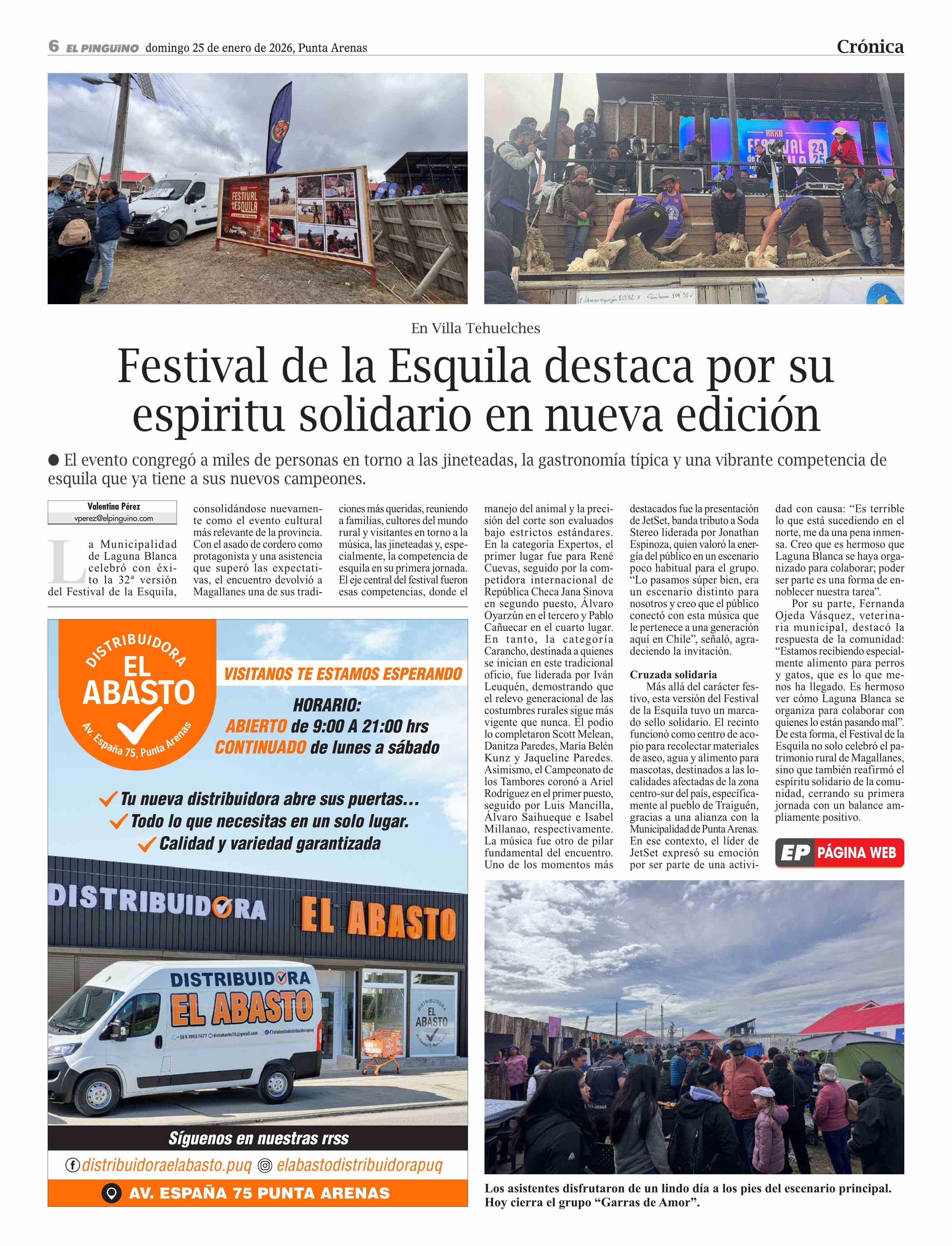 Festival de la Esquila destaca por su espiritu solidario en nueva edición 25-01-2026 El Pingüino |
