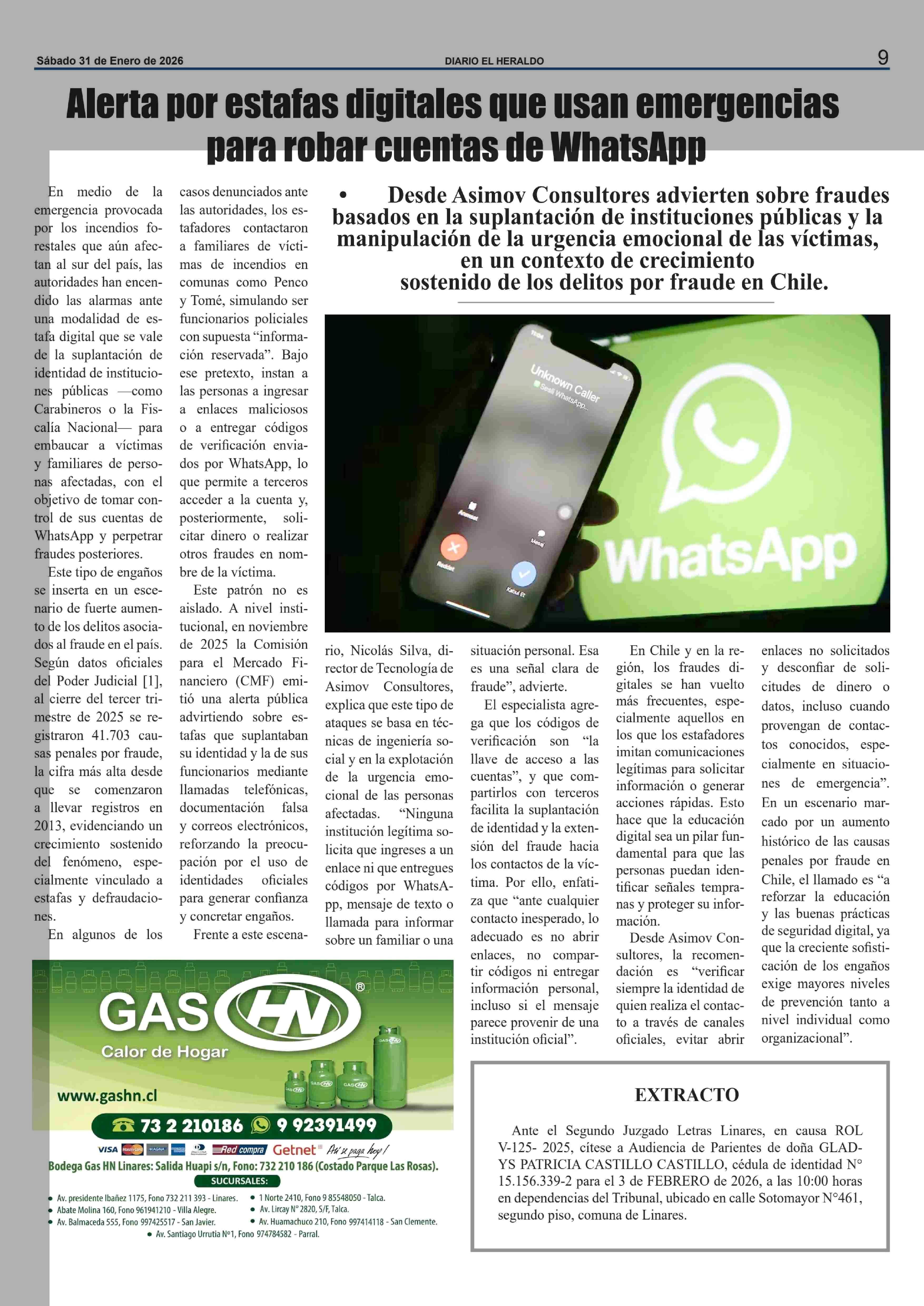 Alerta por estafas digitales que usan emergencias para robar cuentas de WhatsApp 31-01-2026 El Heraldo |