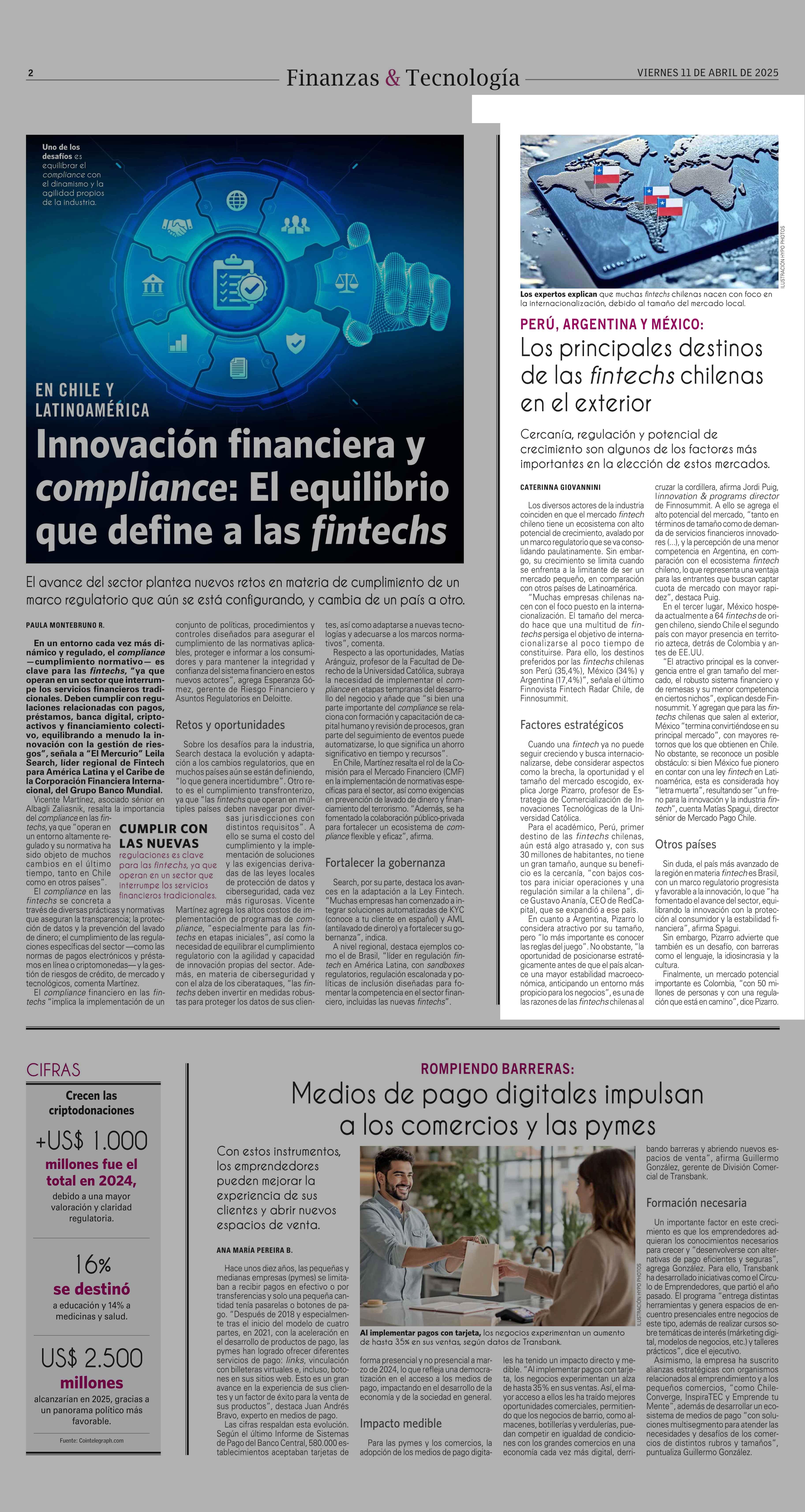 Los principales destinos de las fintechs chilenas en el exterior 11-04-2025 El Mercurio |