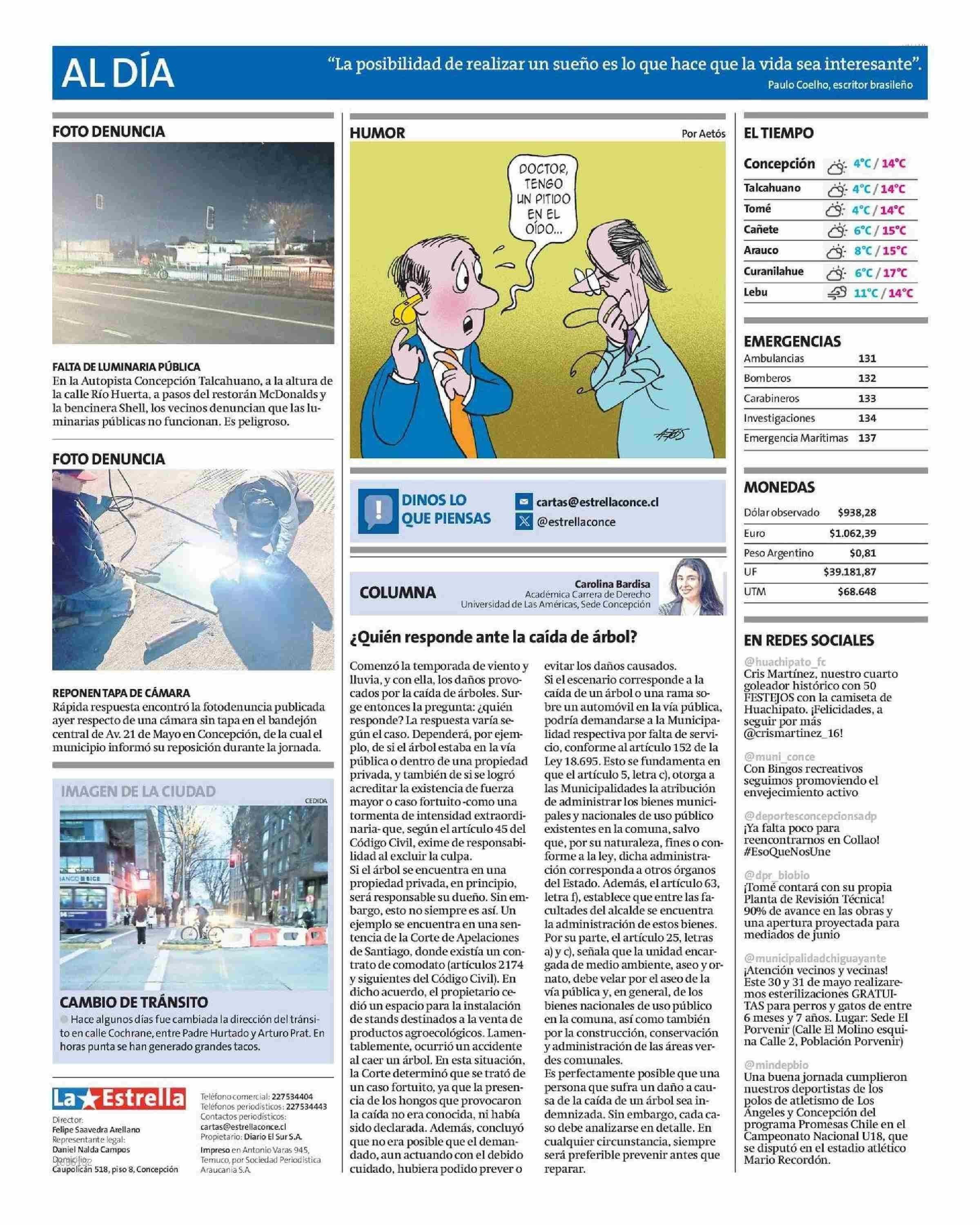 ¿Quién responde ante la caída de árbol? 28-05-2025 La Estrella de Concepción |
