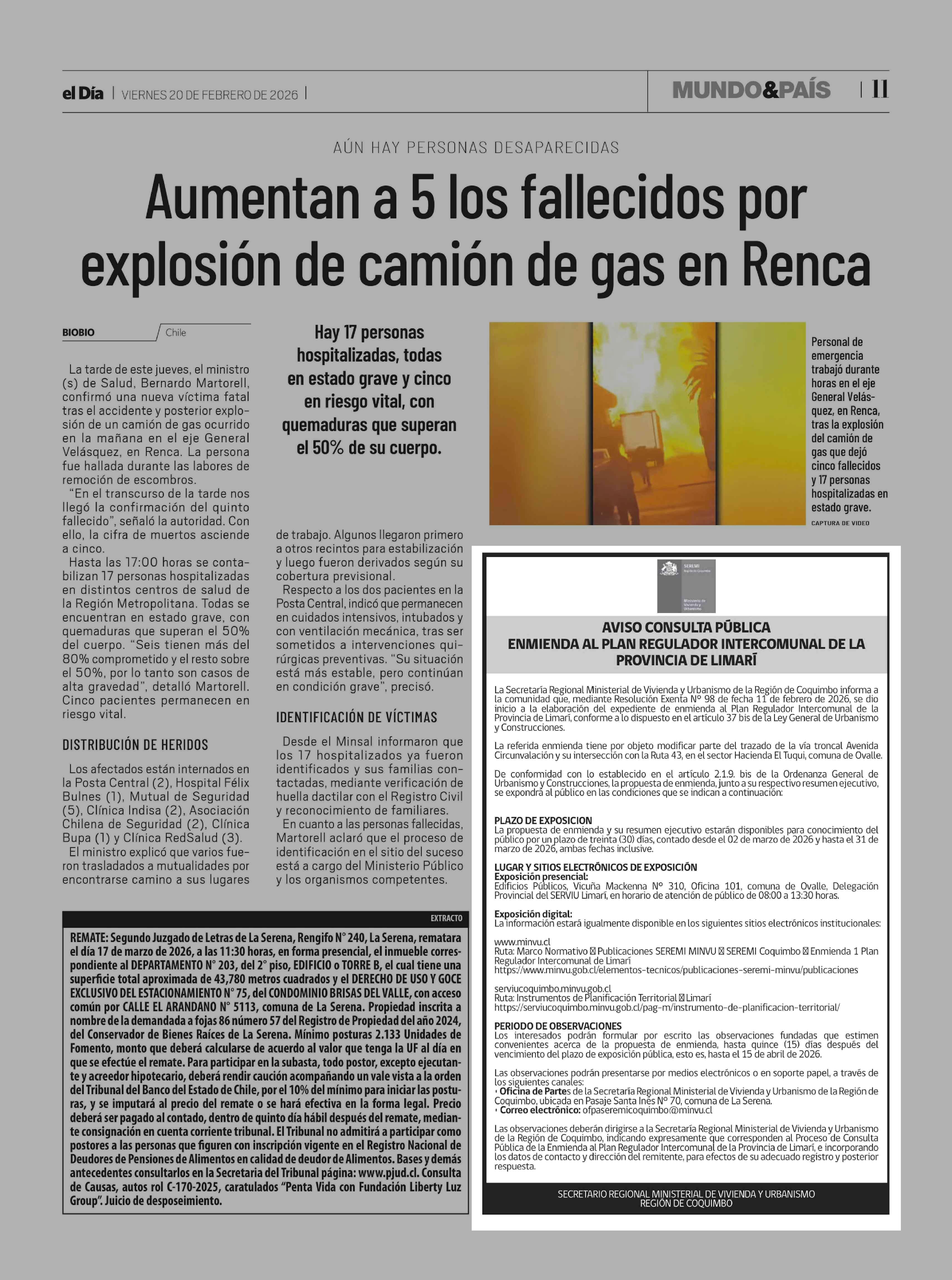 | Fecha: | 20-02-2026 | Sector: | Extractos | Región: | Región de Coquimbo |