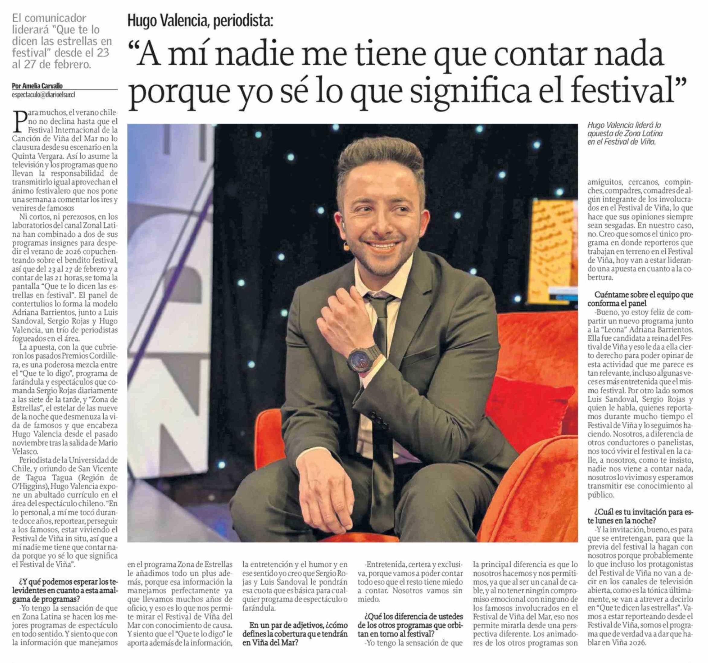 "A mí nadie me tiene que contar nada porque yo sé lo que significa el festival" 23-02-2026 El Sur |