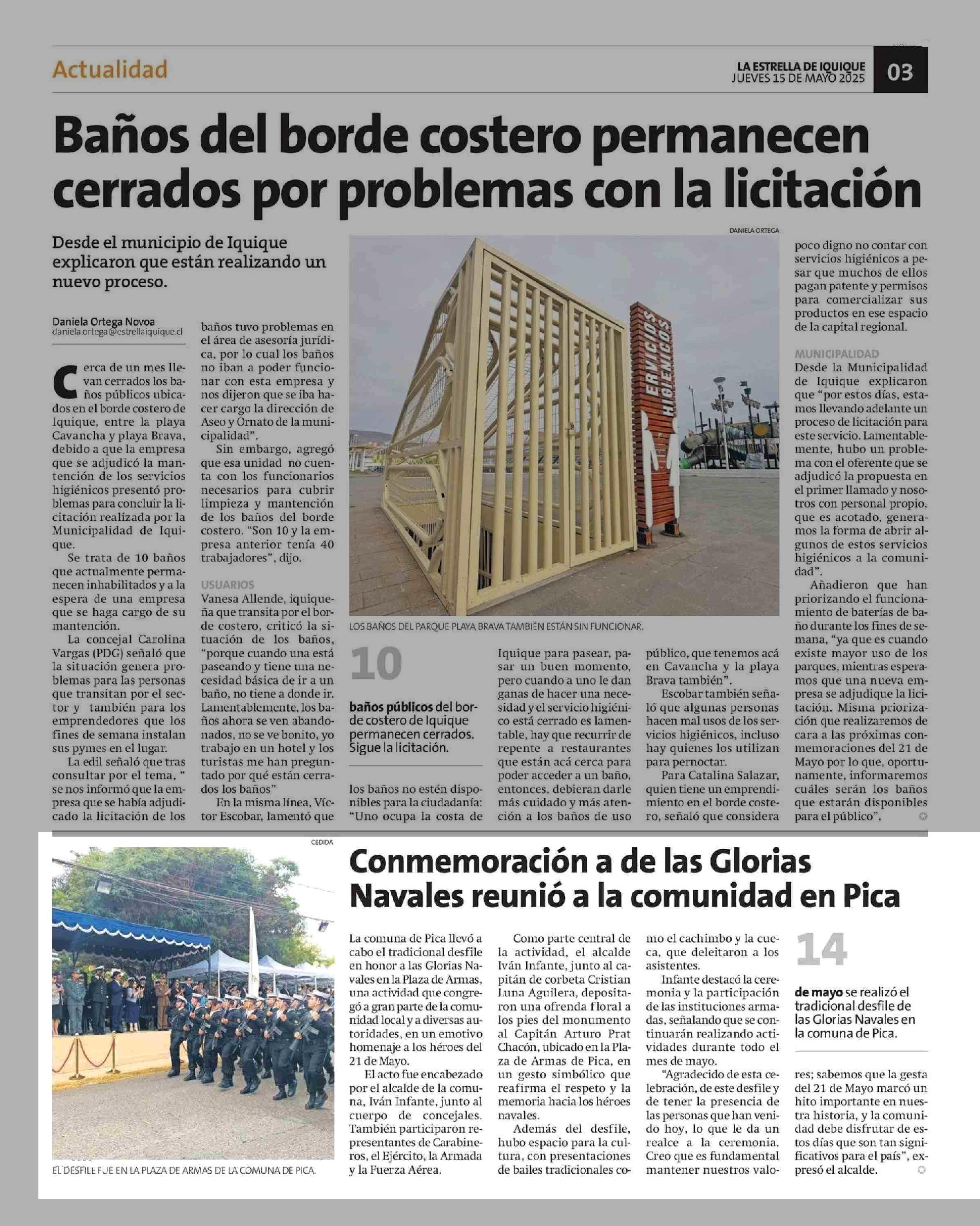 Conmemoración a de las Glorias Navales reunió a la comunidad en Pica 15-05-2025 La Estrella de Iquique |