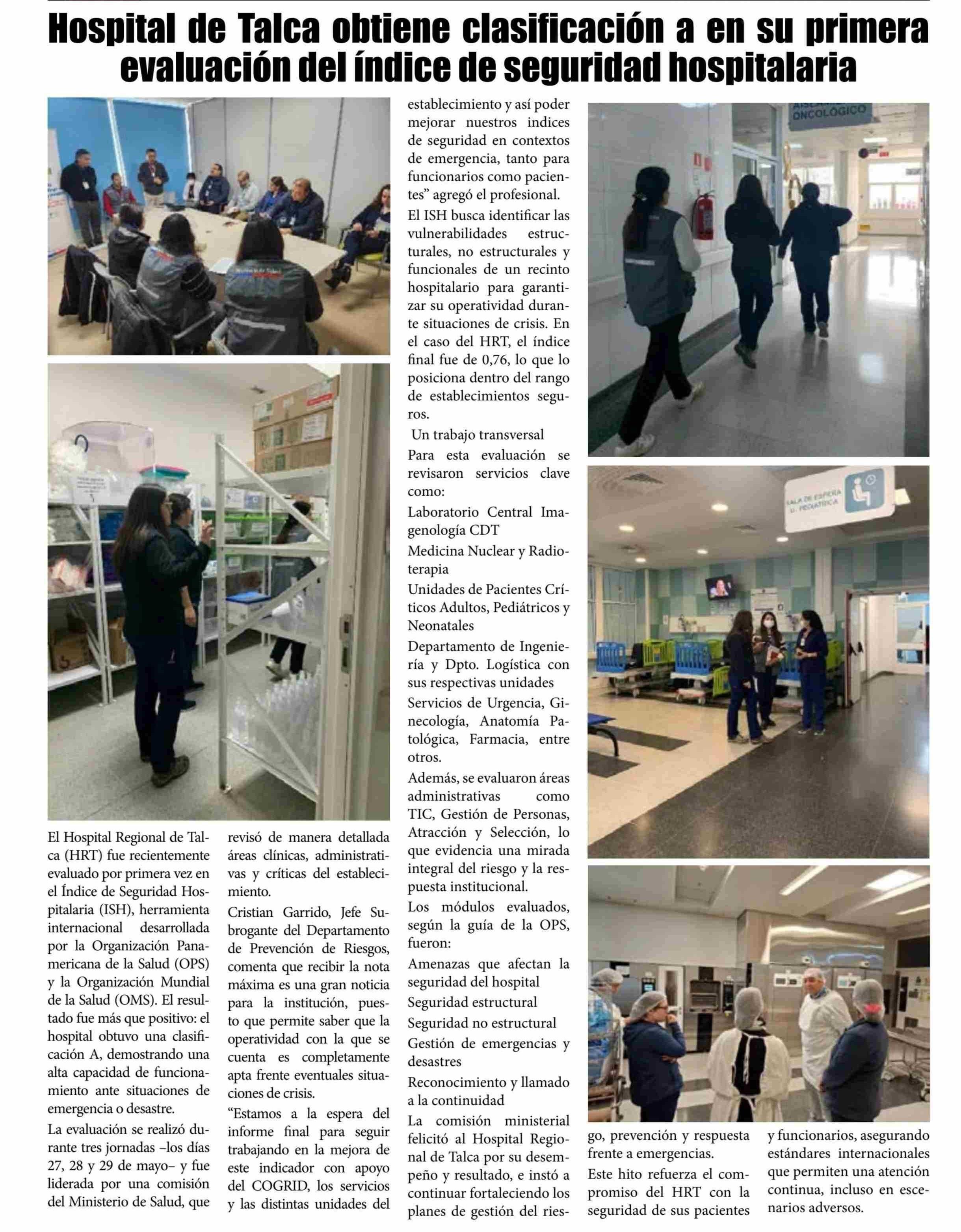 Hospital de Talca obtiene clasificación a en su primera evaluación del índice de seguridad hospitalaria 04-06-2025 El Lector |