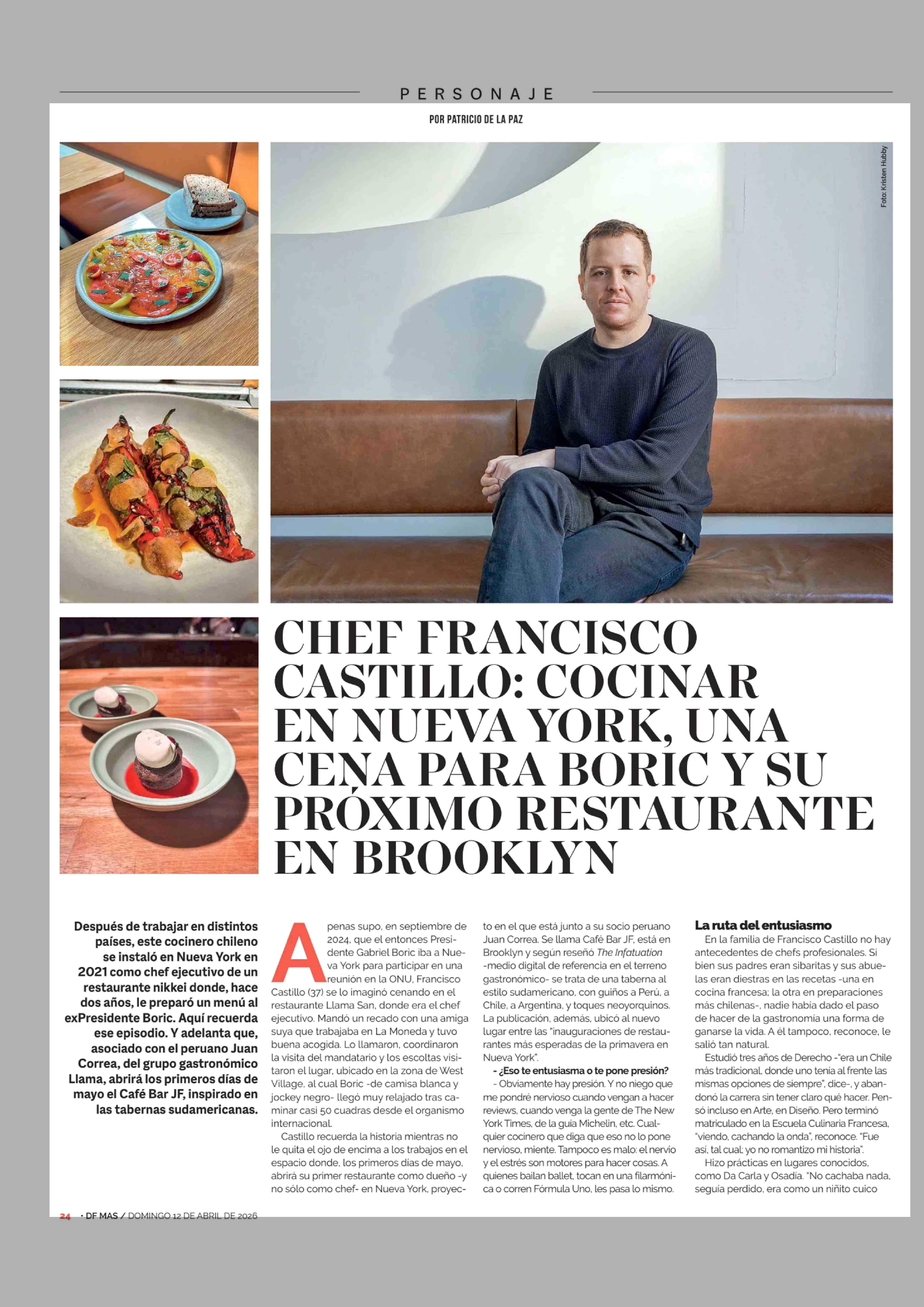 | Título: | CHEF FRANCISCO CASTILLO: COCINAR EN NUEVA YORK, UNA CENA PARA BORIC Y SU PRÓXIMO RESTAURANTE EN BROOKLYN |