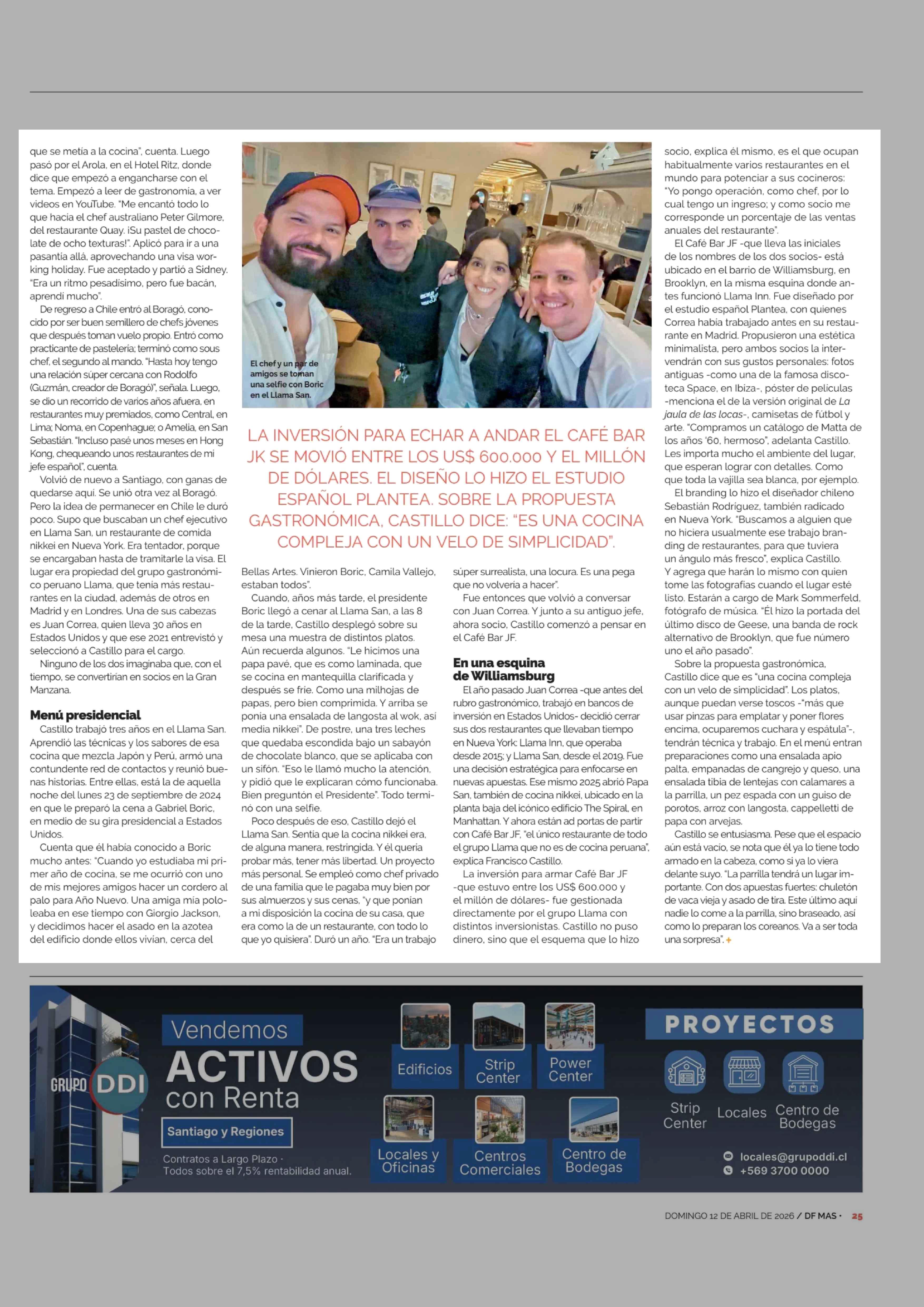 CHEF FRANCISCO CASTILLO: COCINAR EN NUEVA YORK, UNA CENA PARA BORIC Y SU PRÓXIMO RESTAURANTE EN BROOKLYN 12-04-2026 Diario Financiero |