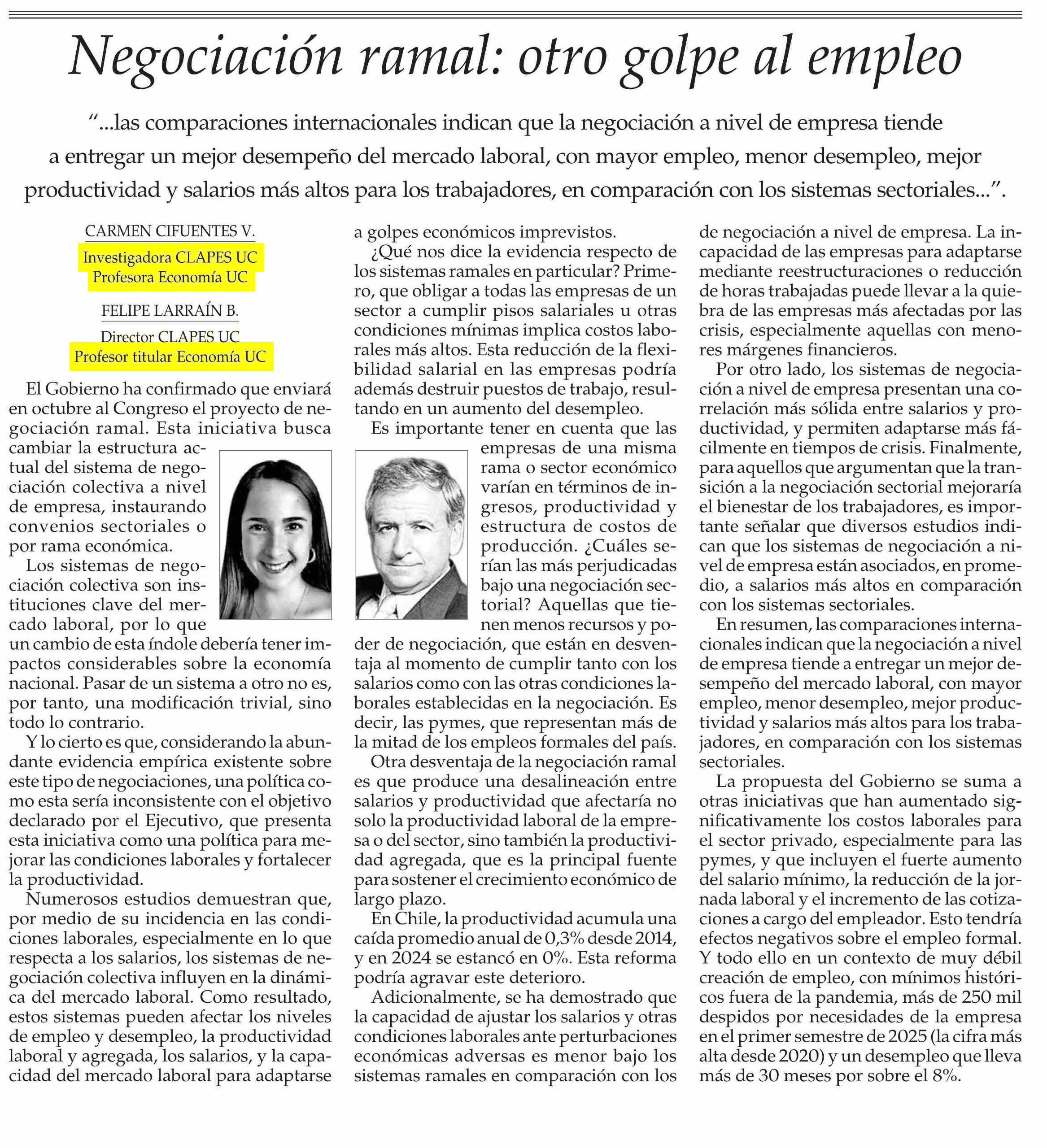 Título: COLUMNAS DE OPINIÓN: Negociación ramal: otro golpe al empleo