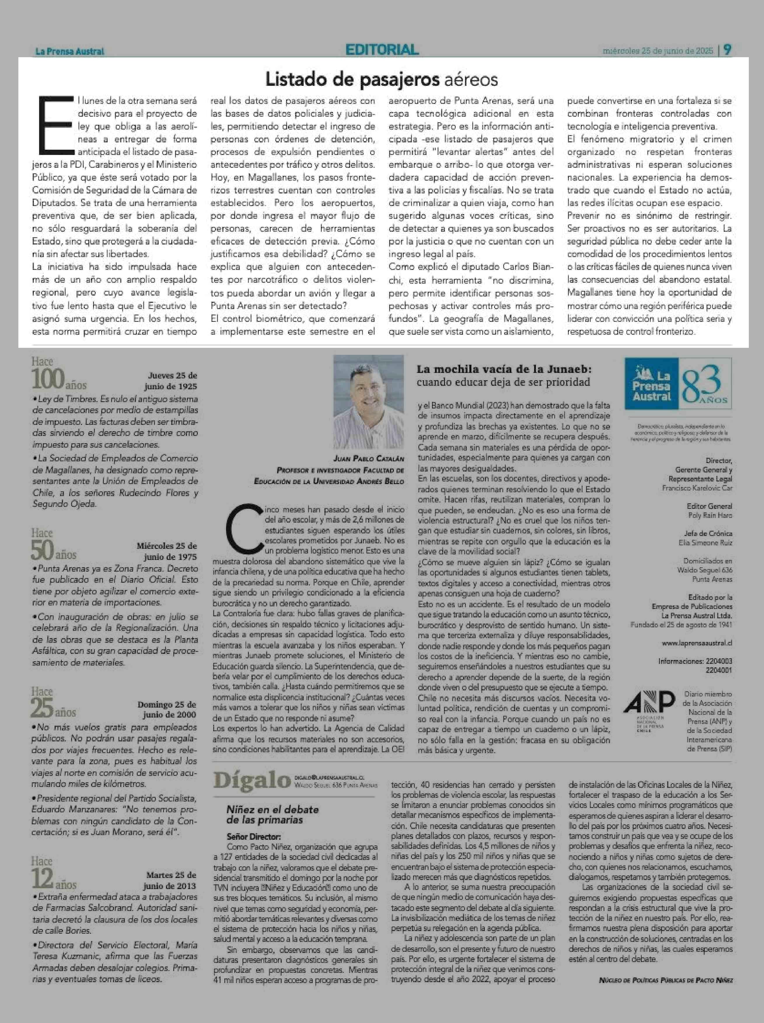 Listado de pasajeros aéreos 25-06-2025 La Prensa Austral |