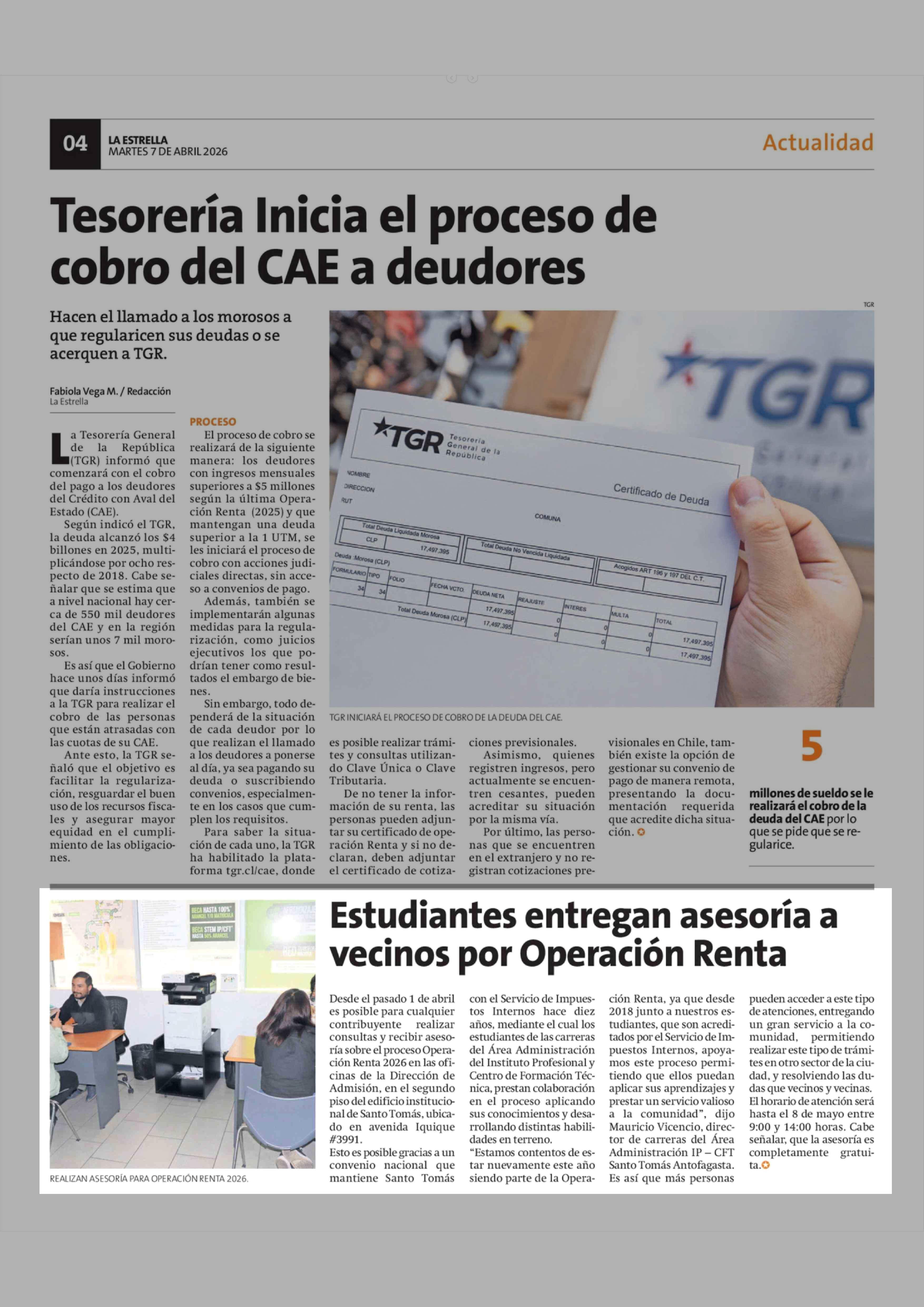 Estudiantes entregan asesoría a vecinos por Operación Renta 07-04-2026 La Estrella de Antofagasta |