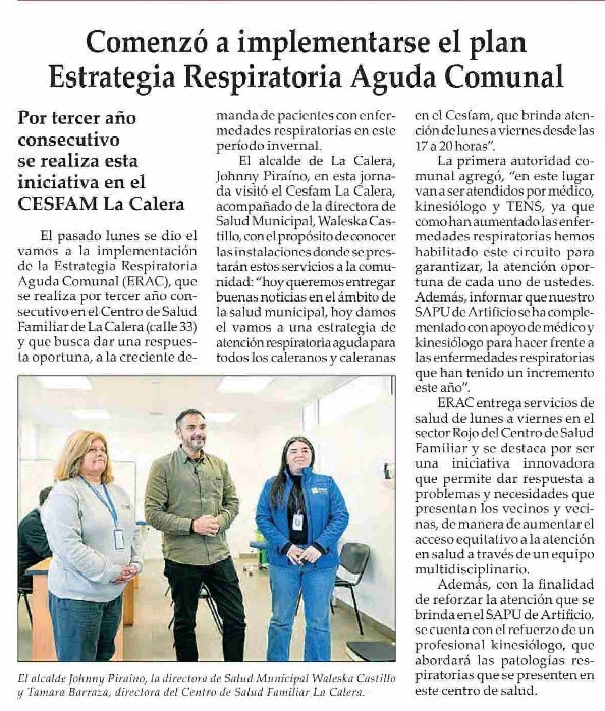 | Título: | Comenzó a implementarse el plan Estrategia Respiratoria Aguda Comunal |