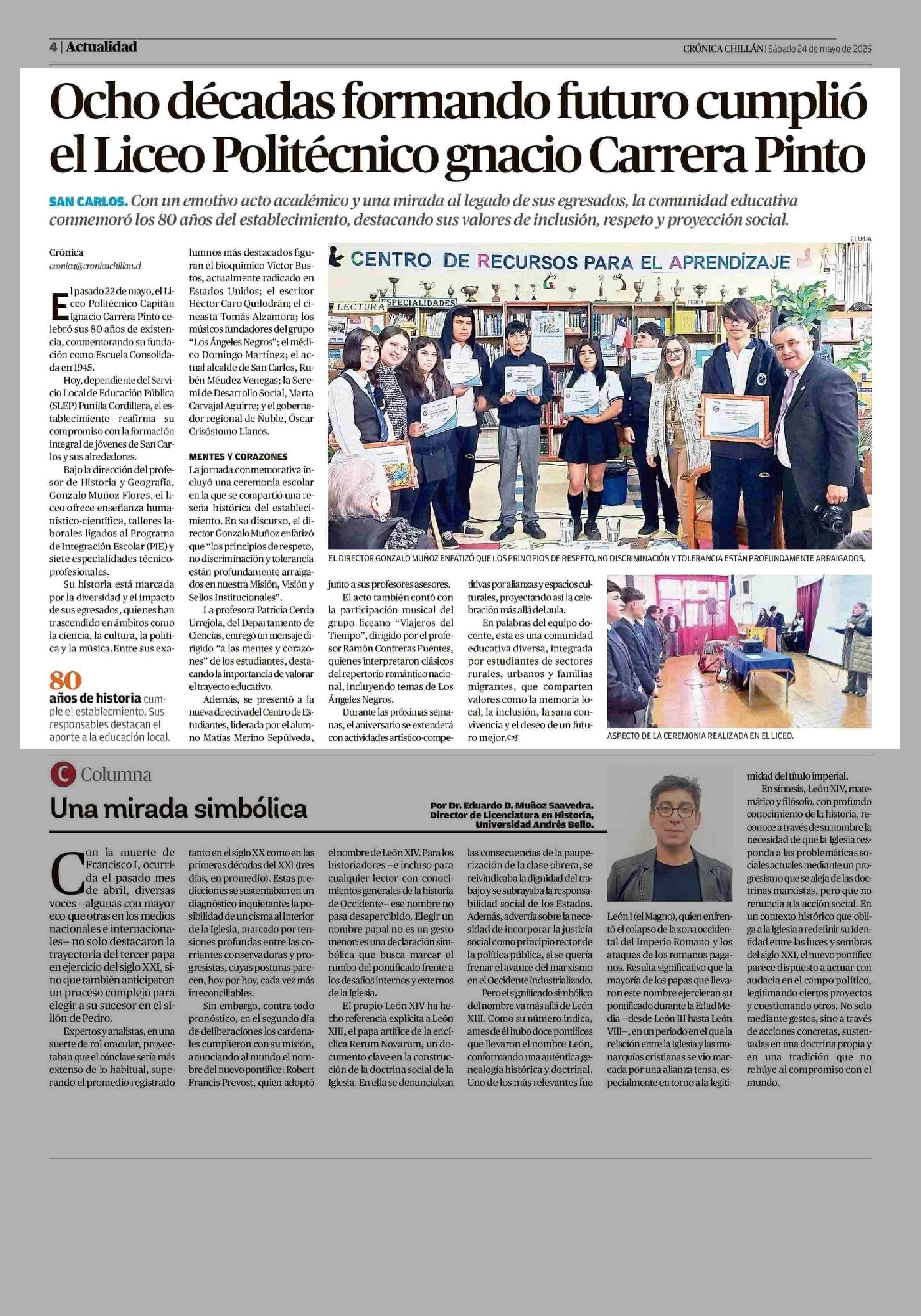 Ocho décadas formando futuro cumplió el Liceo Politécnico gnacio Carrera Pinto 24-05-2025 Crónica de Chillán |