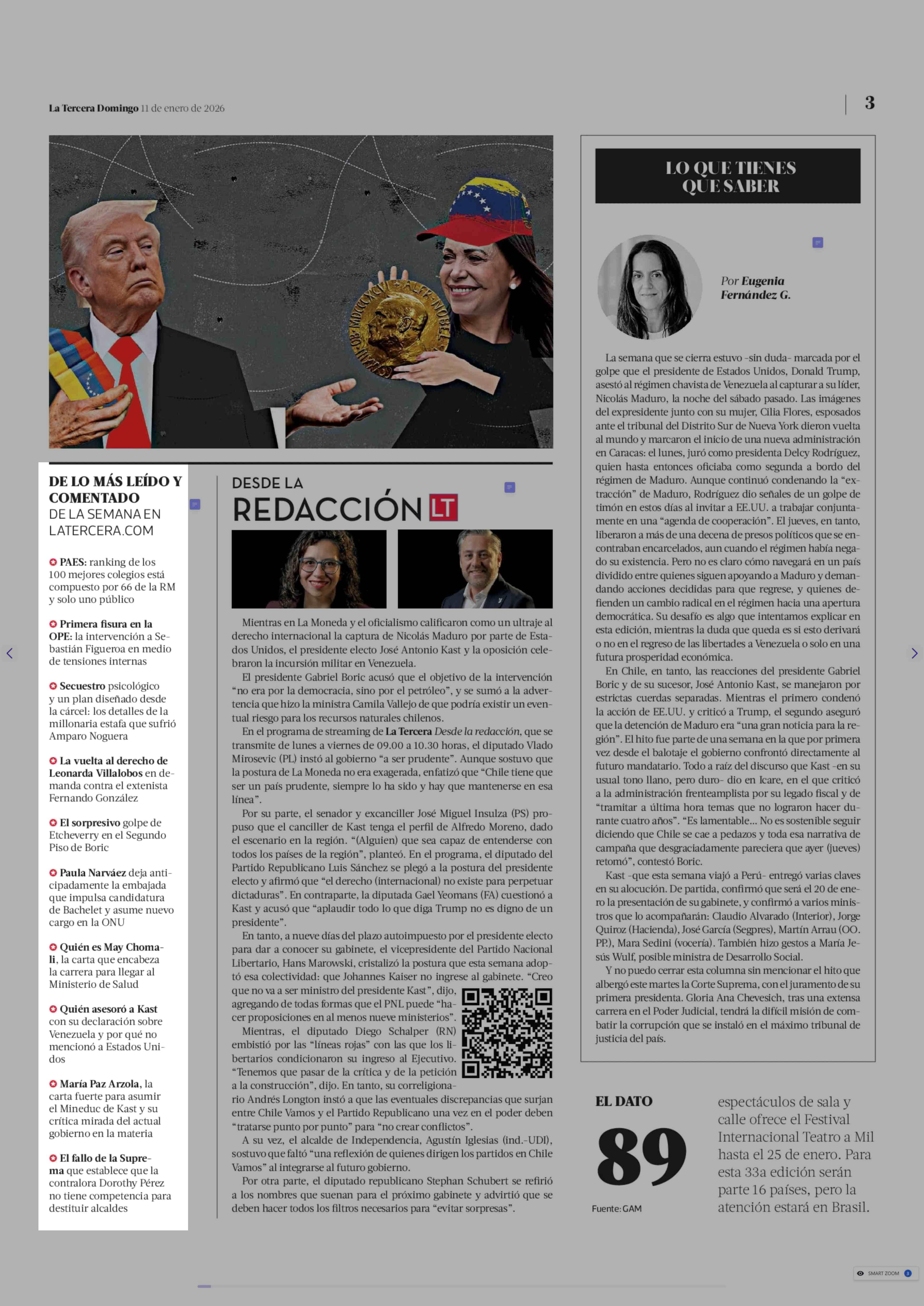 DE LO MÁS LEÍDO Y COMENTADO DE LA SEMANA EN LATERCERA.COM 11-01-2026 La Tercera |