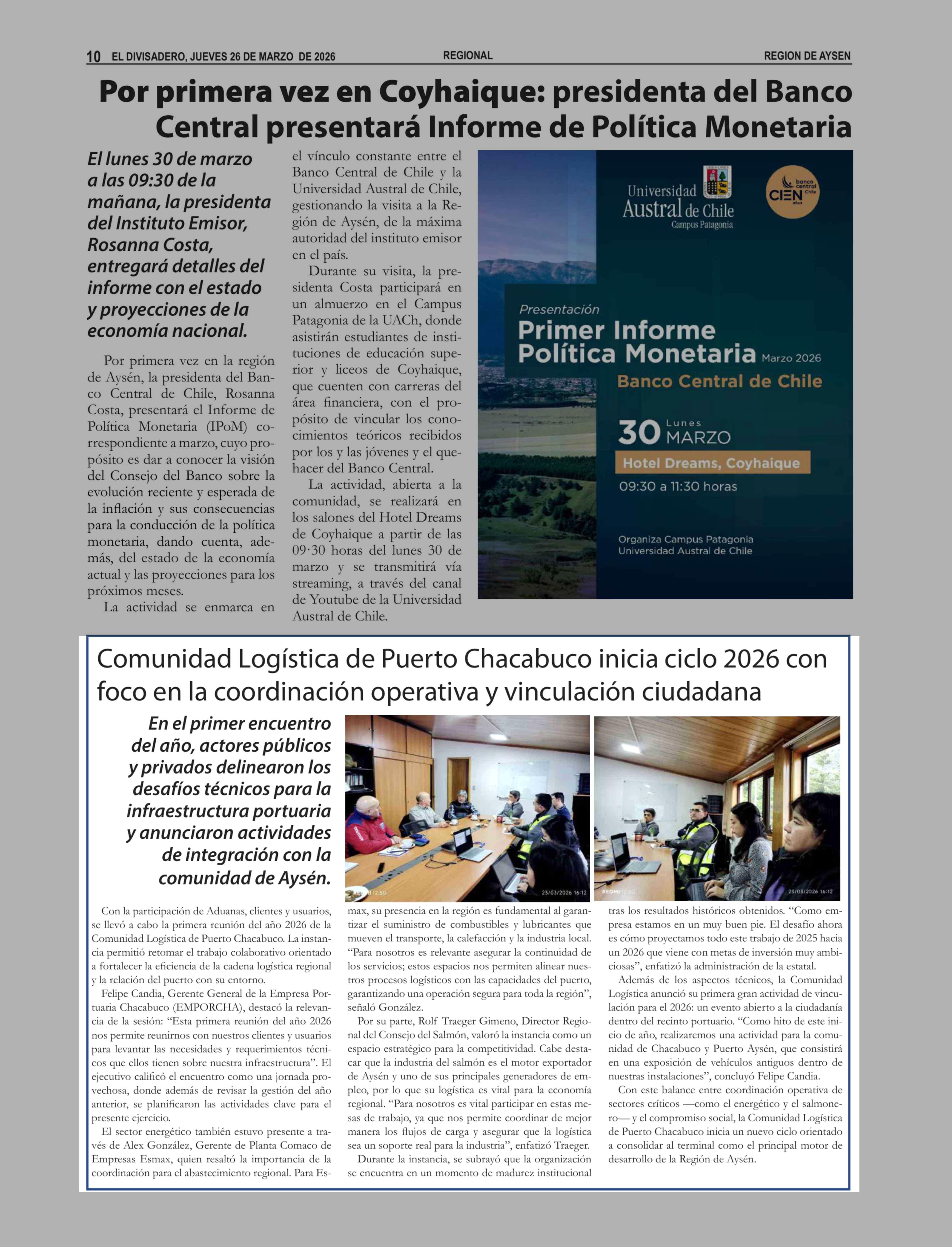 | Fecha: | 26-03-2026 | Sector: | Noticia general | Región: | Región Aysén del General Carlos Ibáñez del Campo |