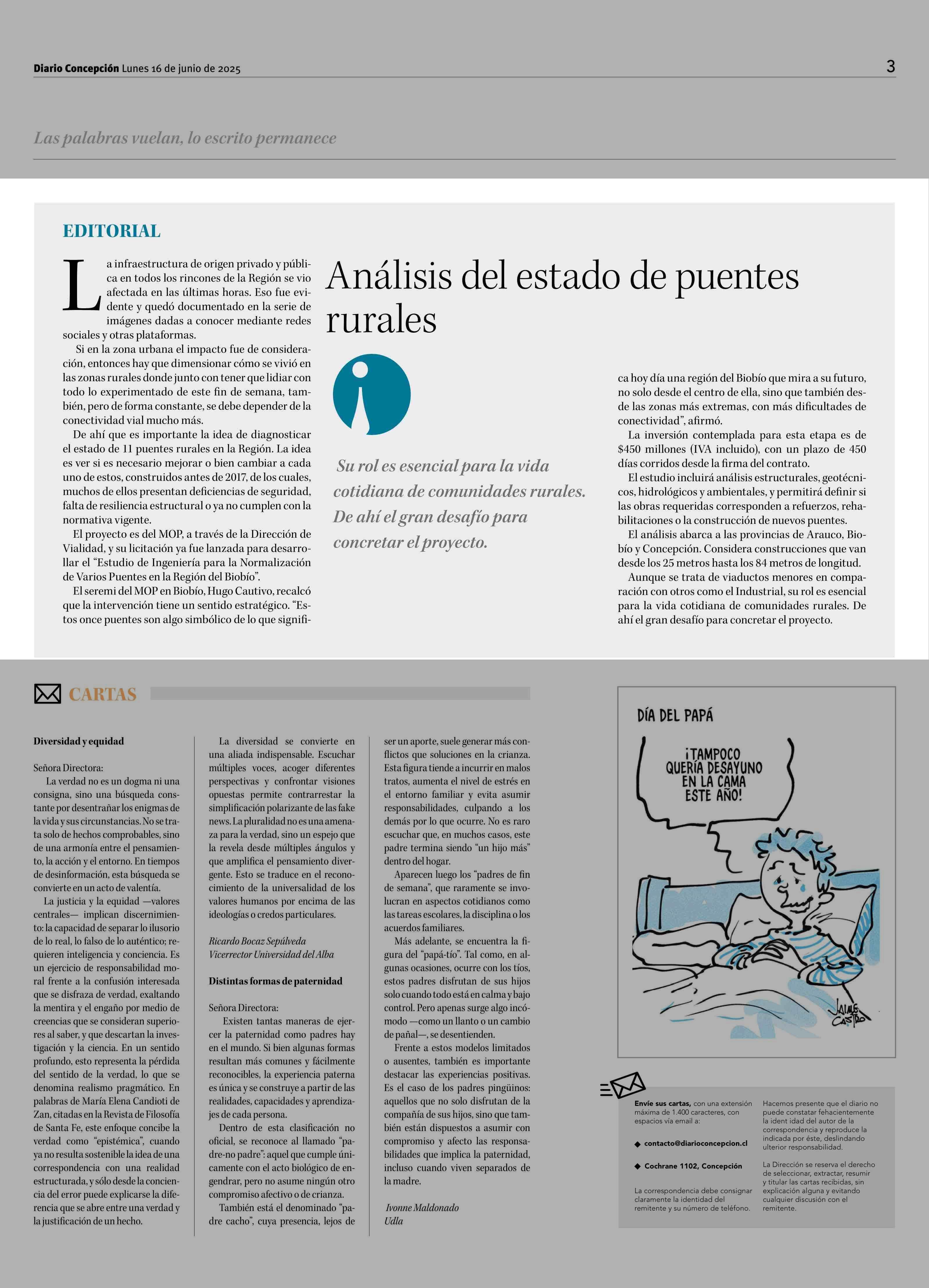 EDITORIAL: Análisis del estado de puentes rurales 16-06-2025 Diario Concepción |