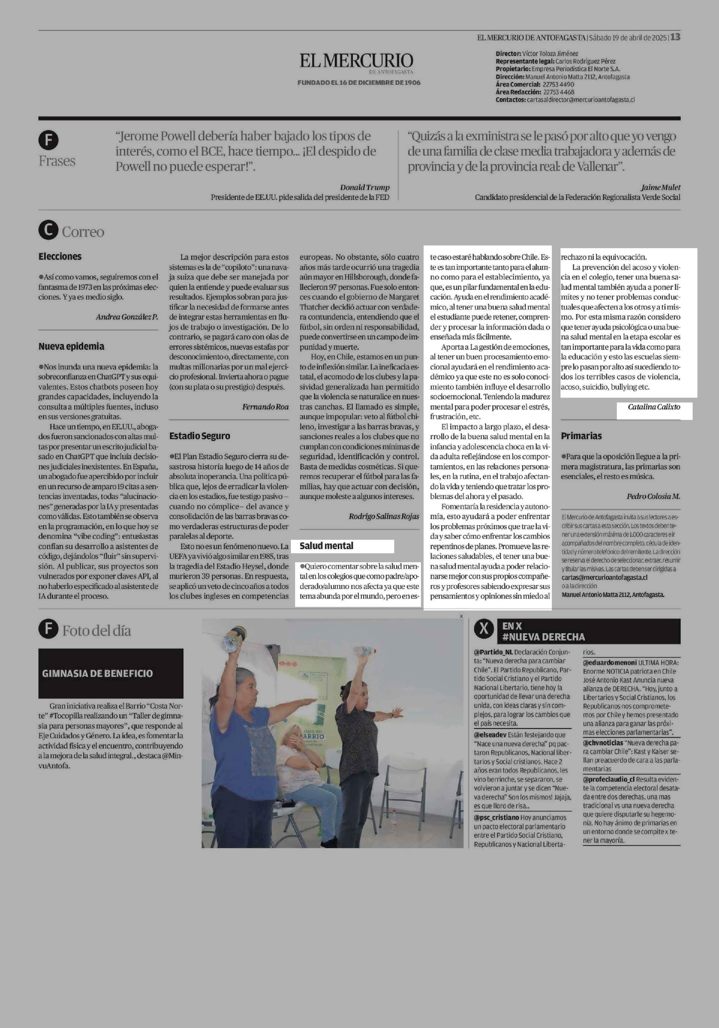 Salud mental 19-04-2025 El Mercurio de Antofagasta |
