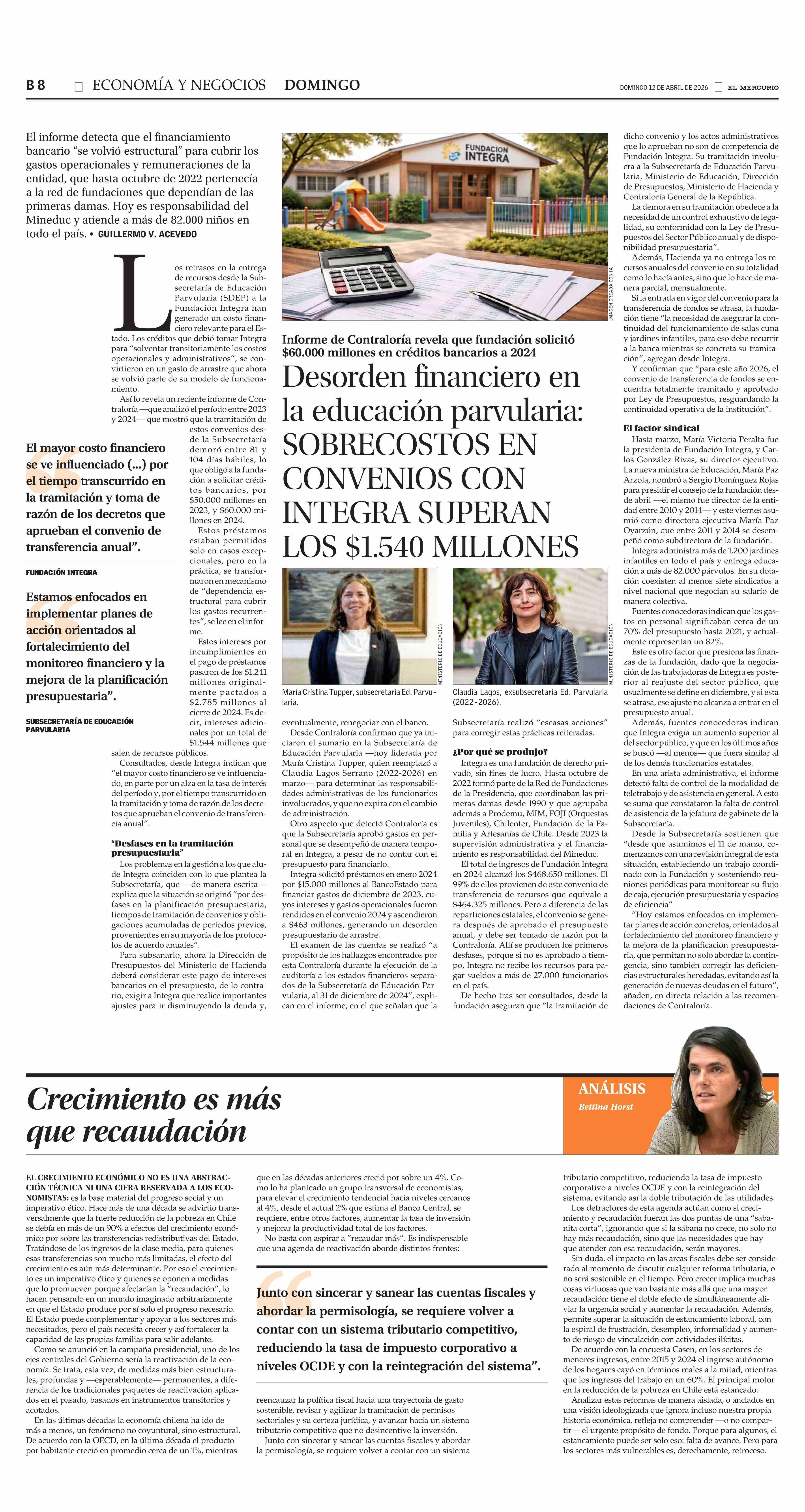 Título: Desorden financiero en la educación parvularia: SOBRECOSTOS EN CONVENIOS CON INTEGRA SUPERAN LOS $1.540 MILLONES