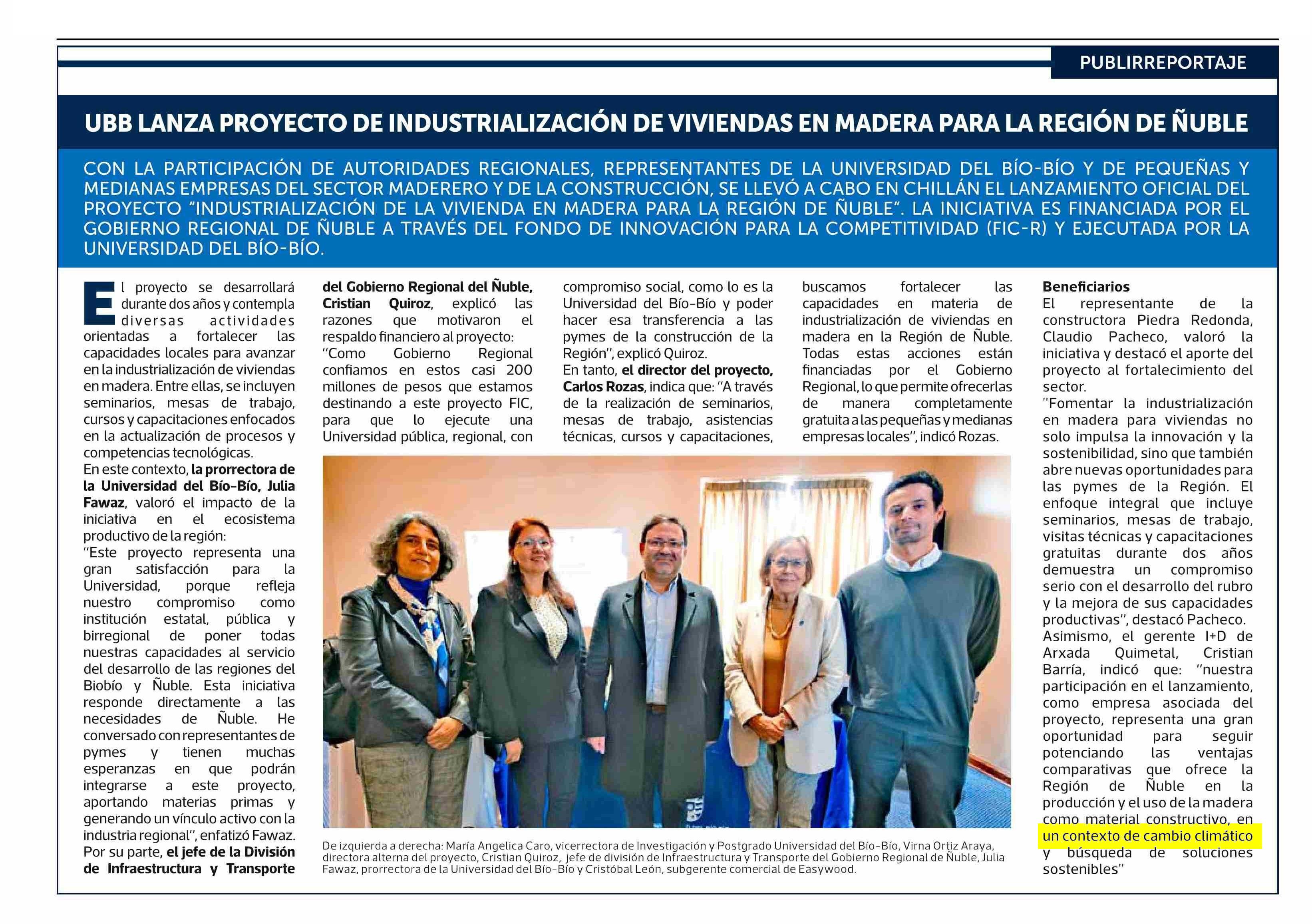 UBB LANZA PROYECTO DE INDUSTRIALIZACIÓN DE VIVIENDAS EN MADERA PARA LA REGIÓN DE ÑUBLE 10-06-2025 La Discusión |