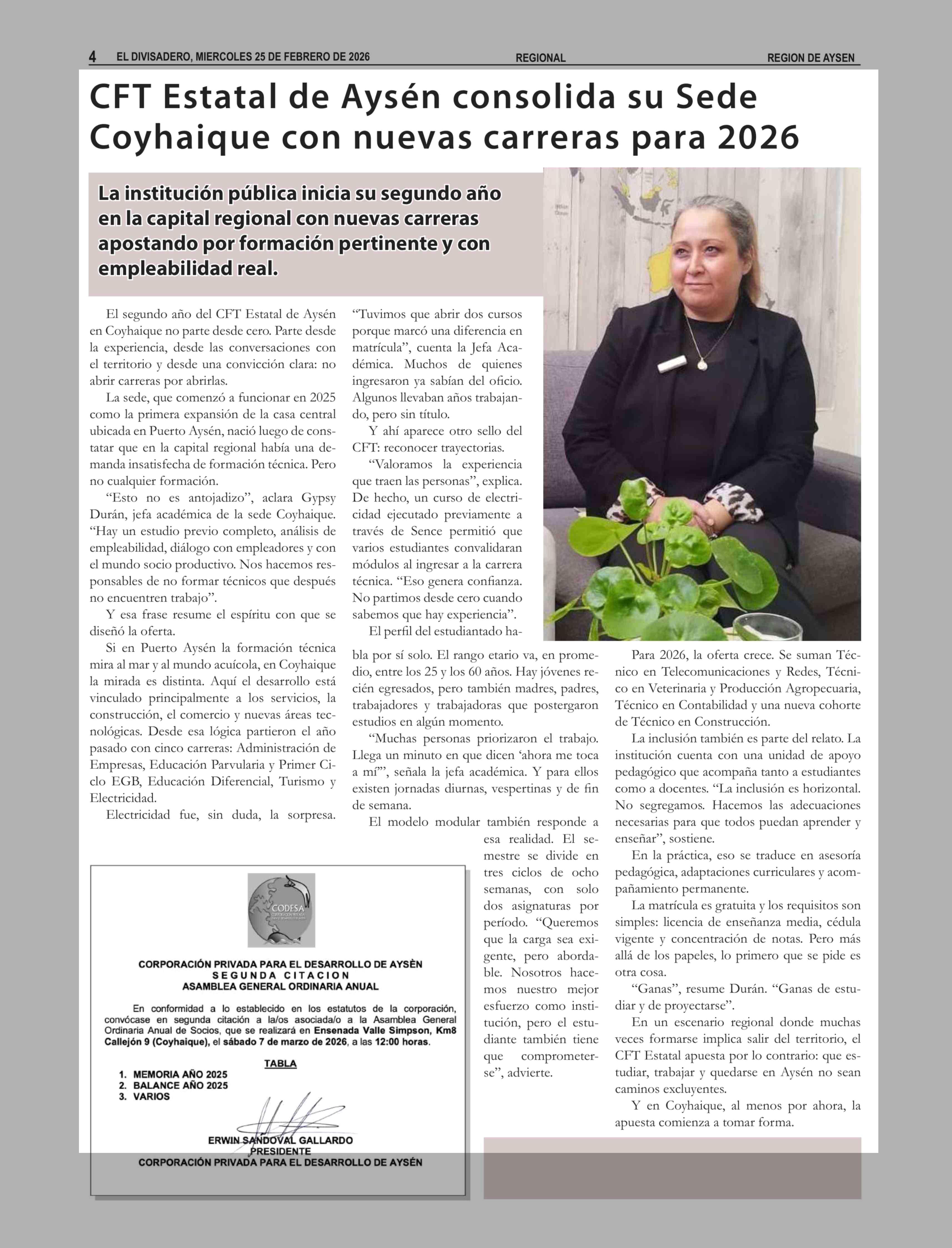 CFT Estatal de Aysén consolida su Sede Coyhaique con nuevas carreras para 2026 25-02-2026 El Divisadero |