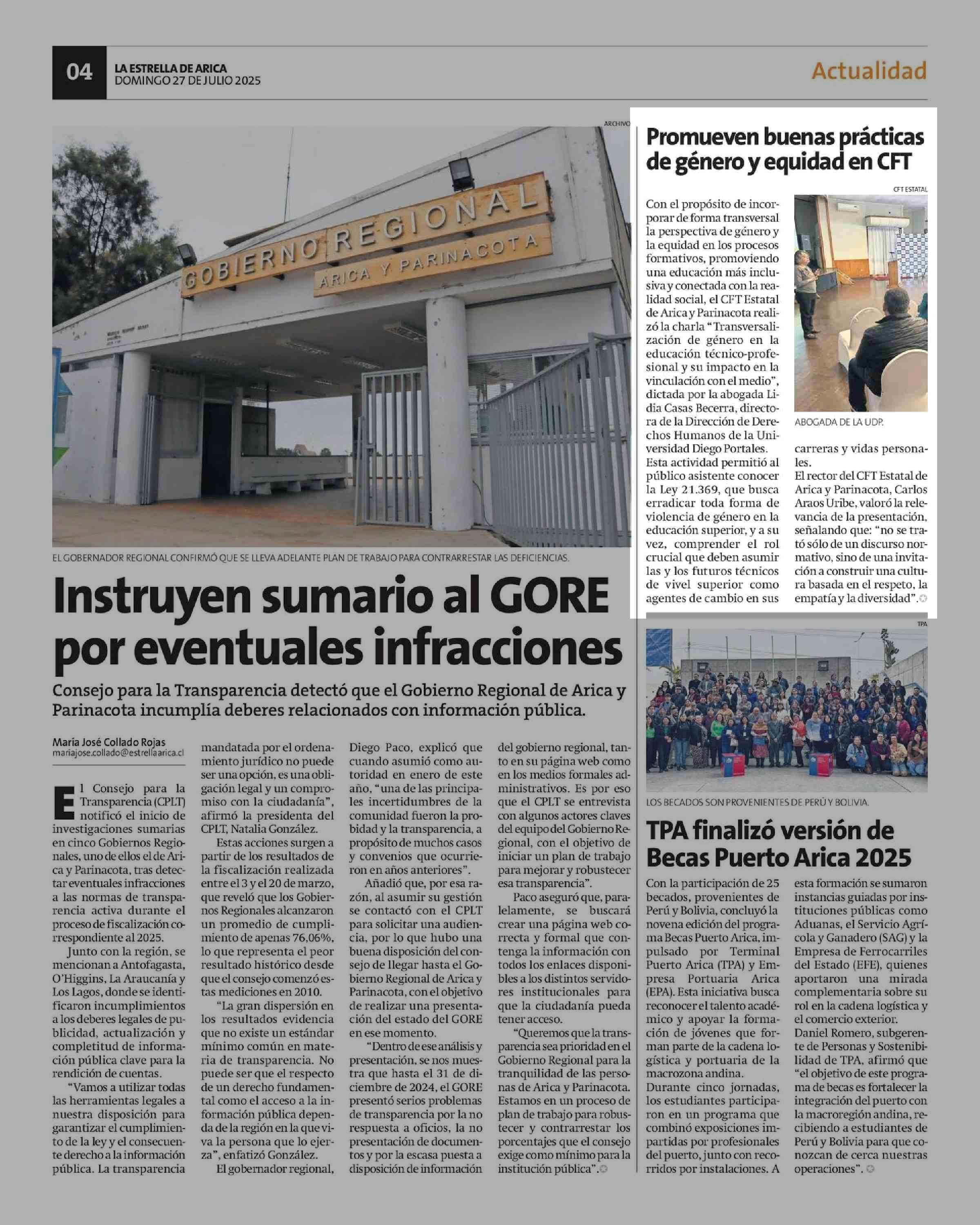 Promueven buenas prácticas de género y equidad en CFT 27-07-2025 La Estrella de Arica |