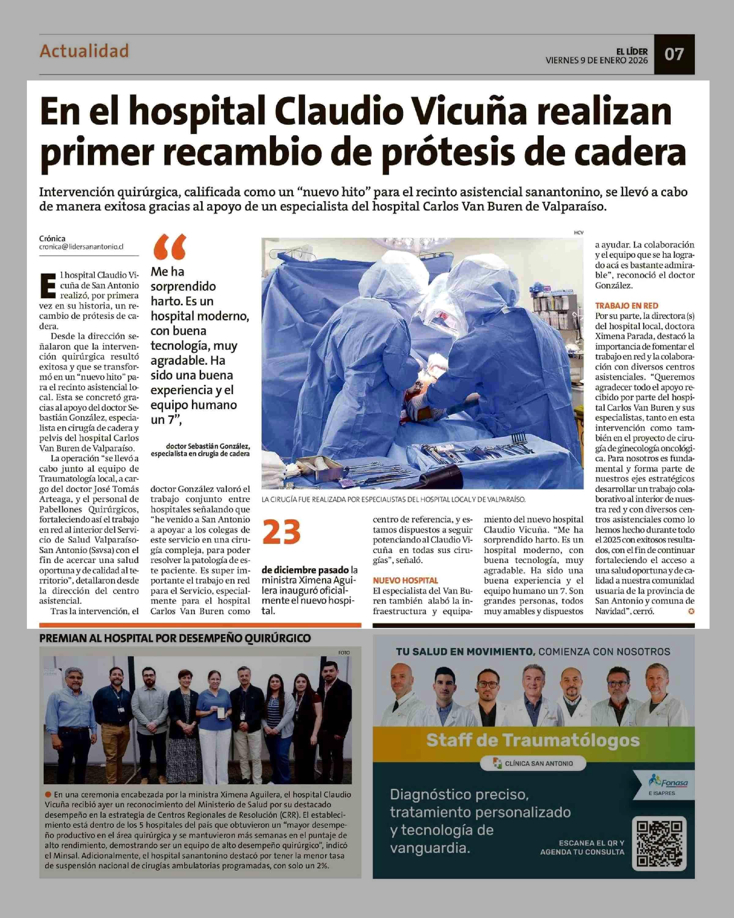 Título: En el hospital Claudio Vicuña realizan primer recambio de prótesis de cadera