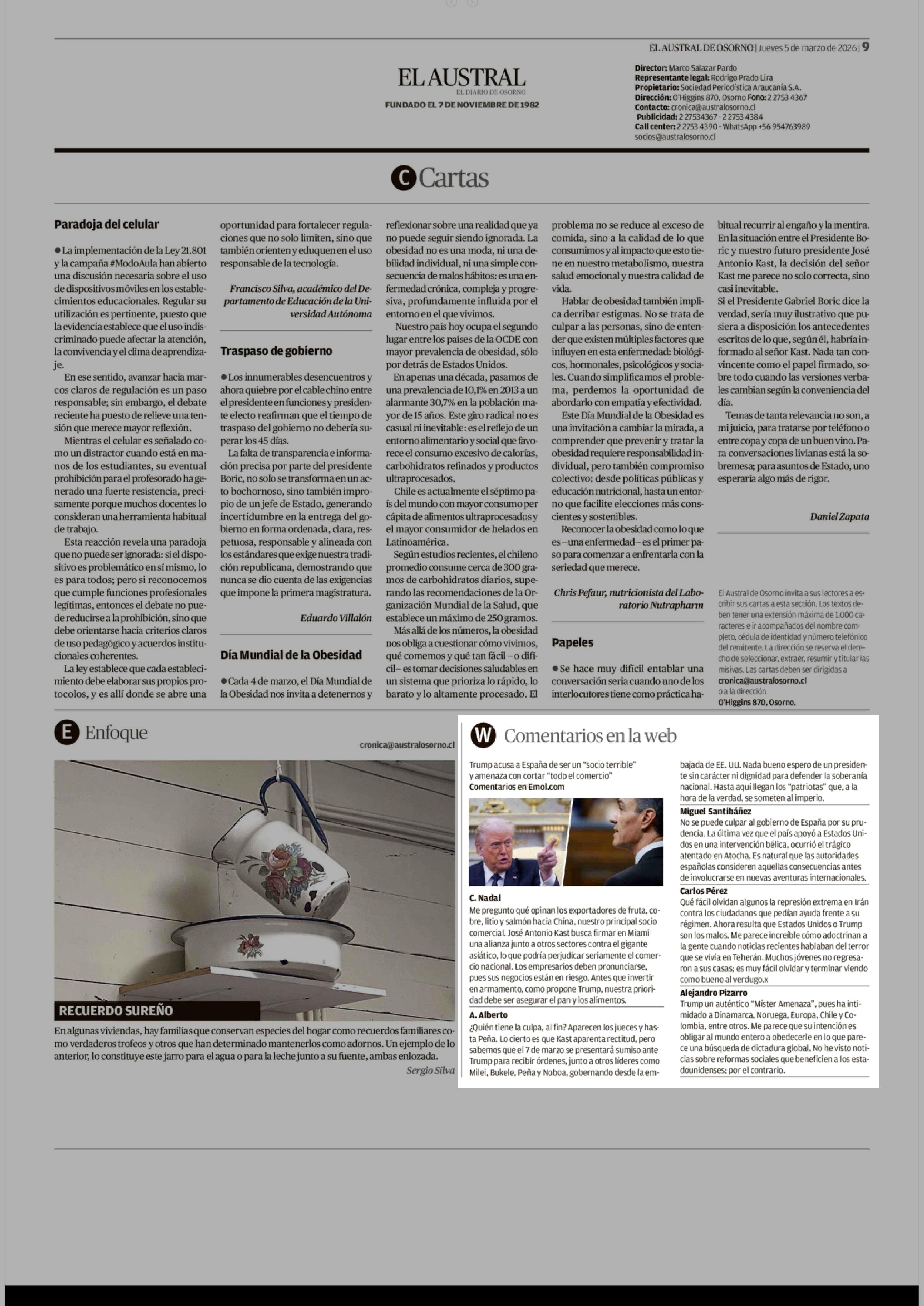 W Comentarios en la web 05-03-2026 El Austral de Osorno |