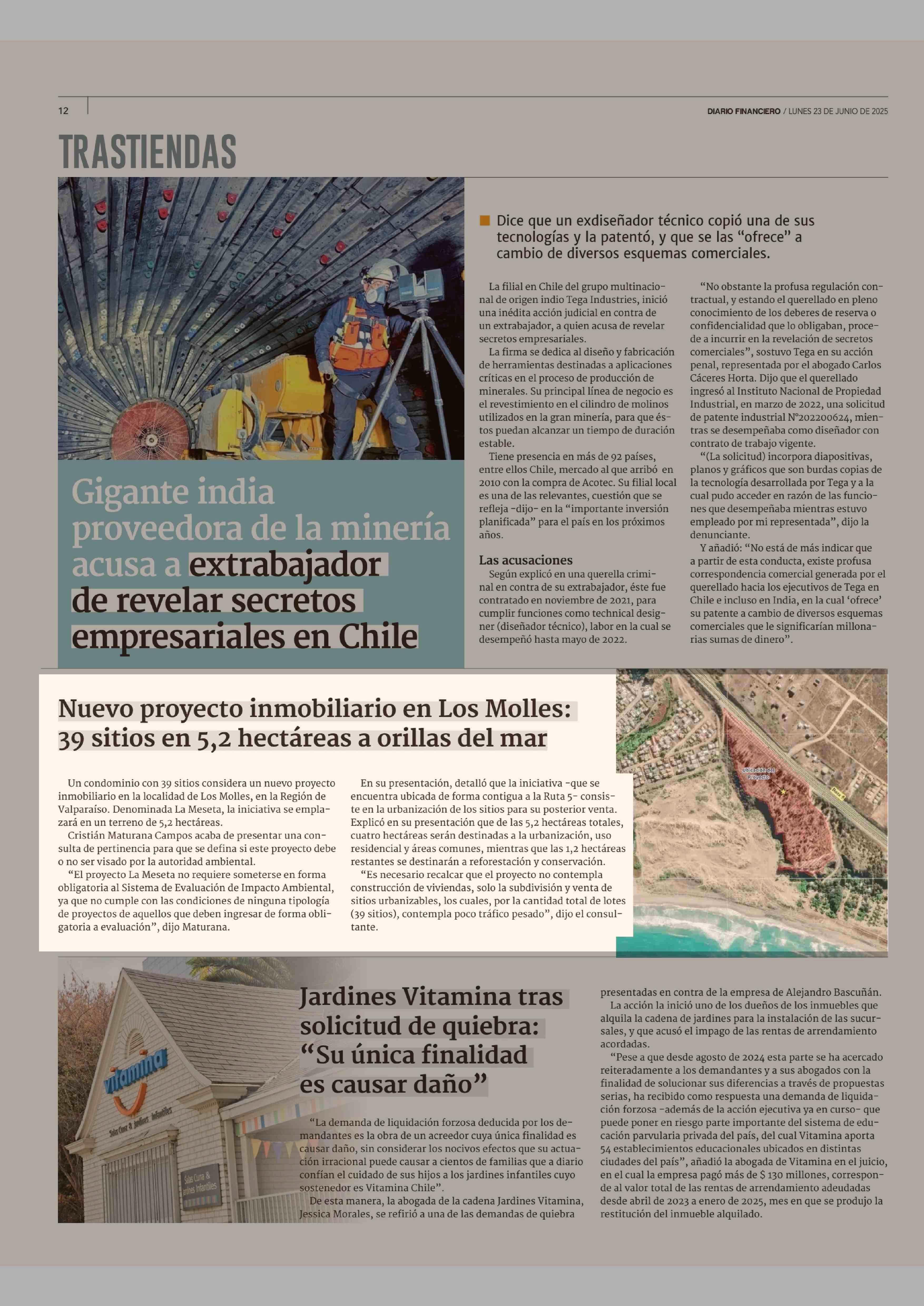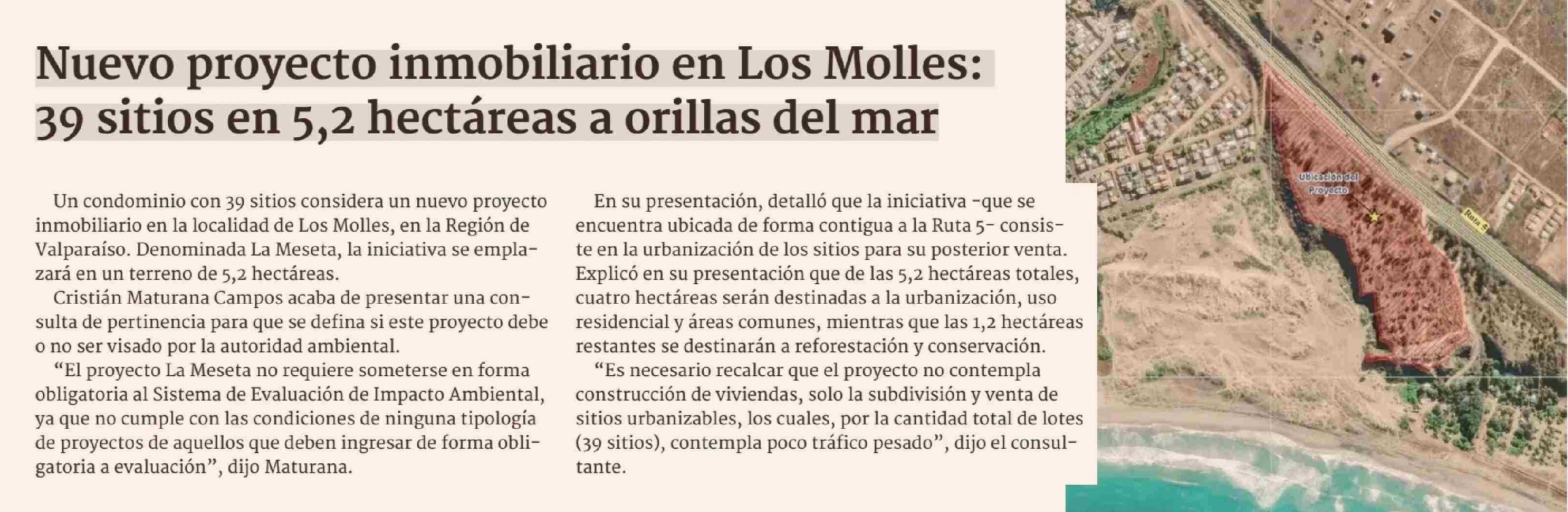 Nuevo proyecto inmobiliario en Los Molles: 39 sitios en 5,2 hectáreas a orillas del mar 23-06-2025 Diario Financiero |