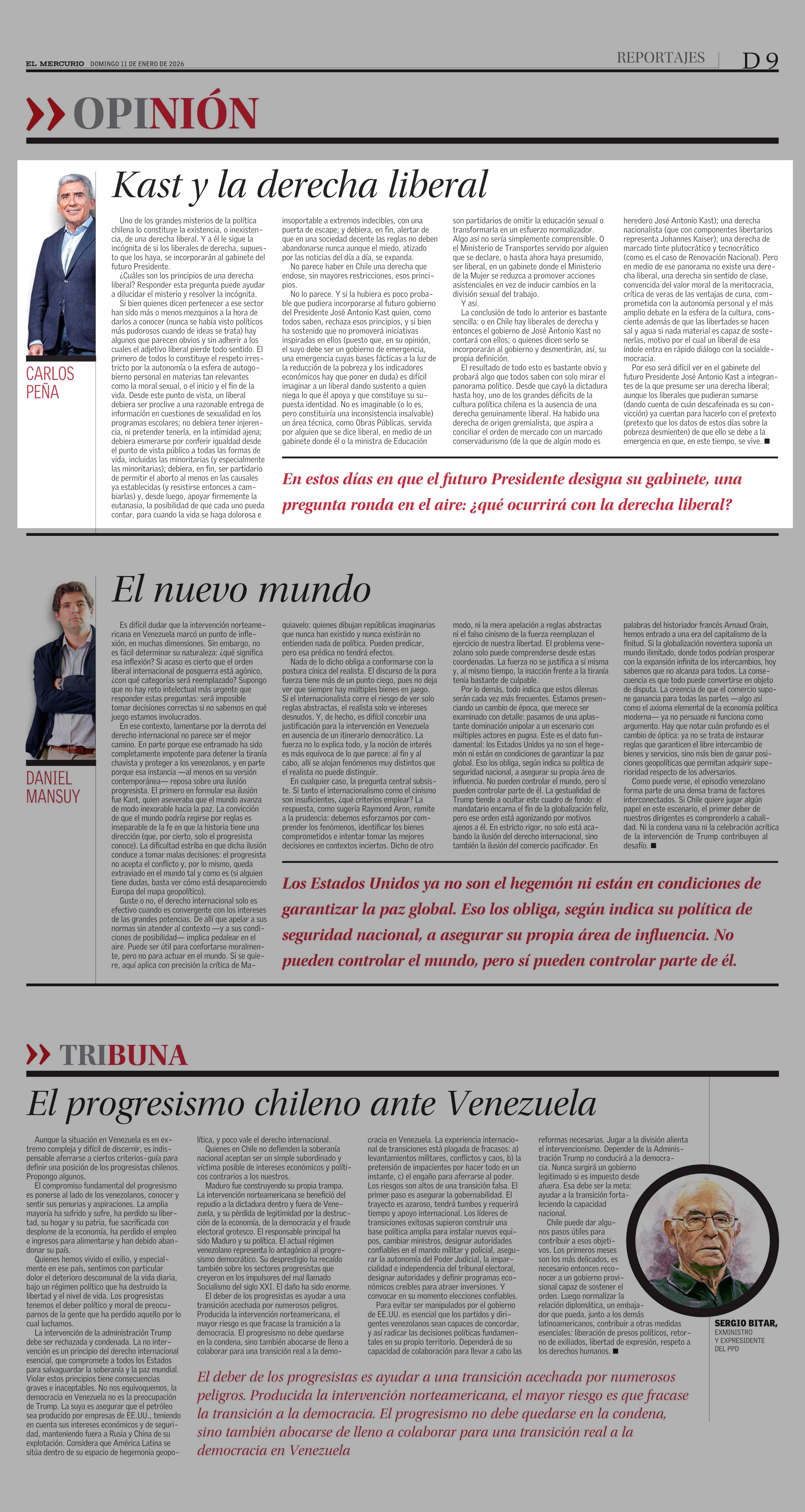 Columnas de Opinión: Kast y la derecha liberal 11-01-2026 El Mercurio |