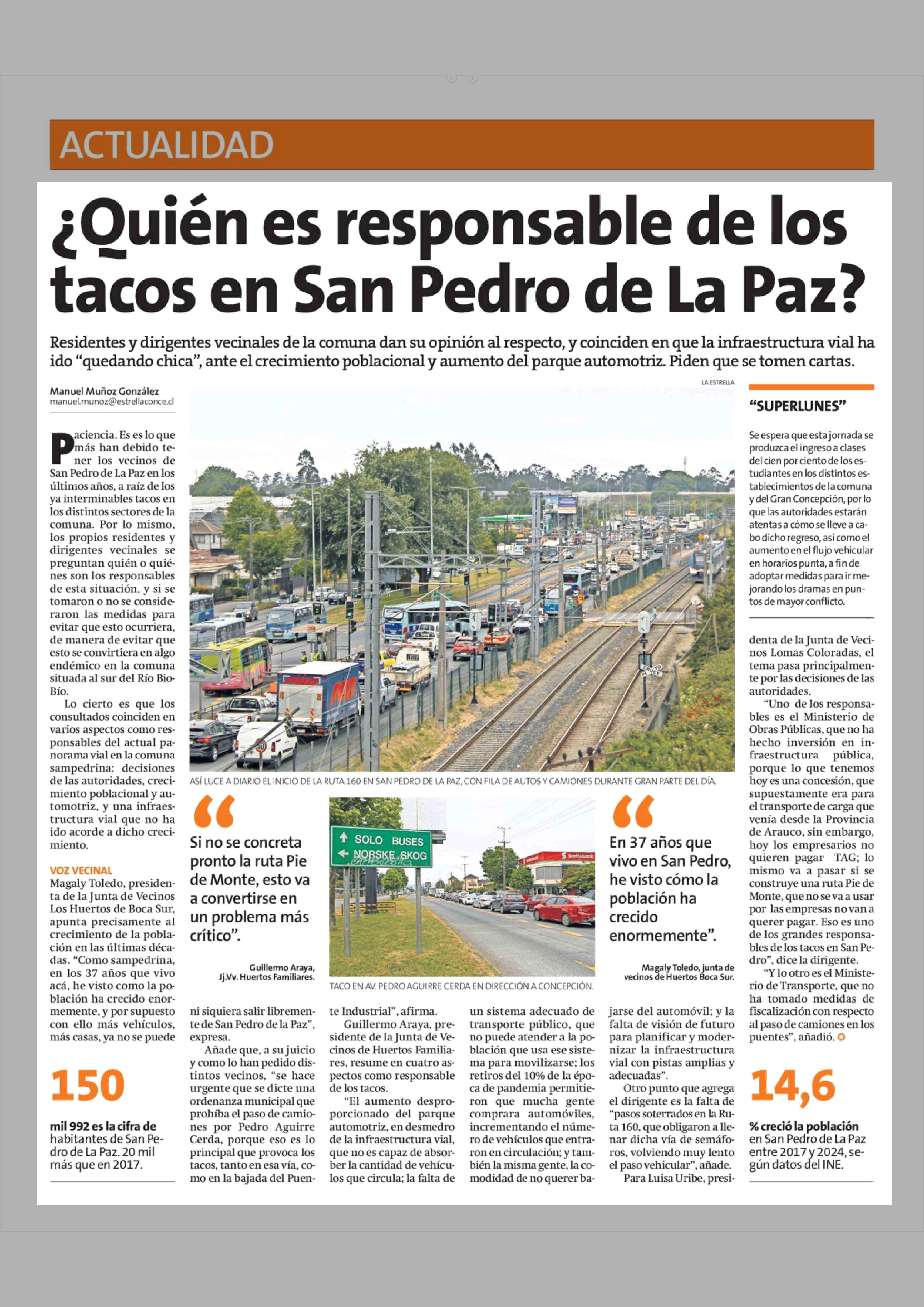 ¿Quién es responsable de los tacos en San Pedro de La Paz? 09-03-2026 La Estrella de Concepción |