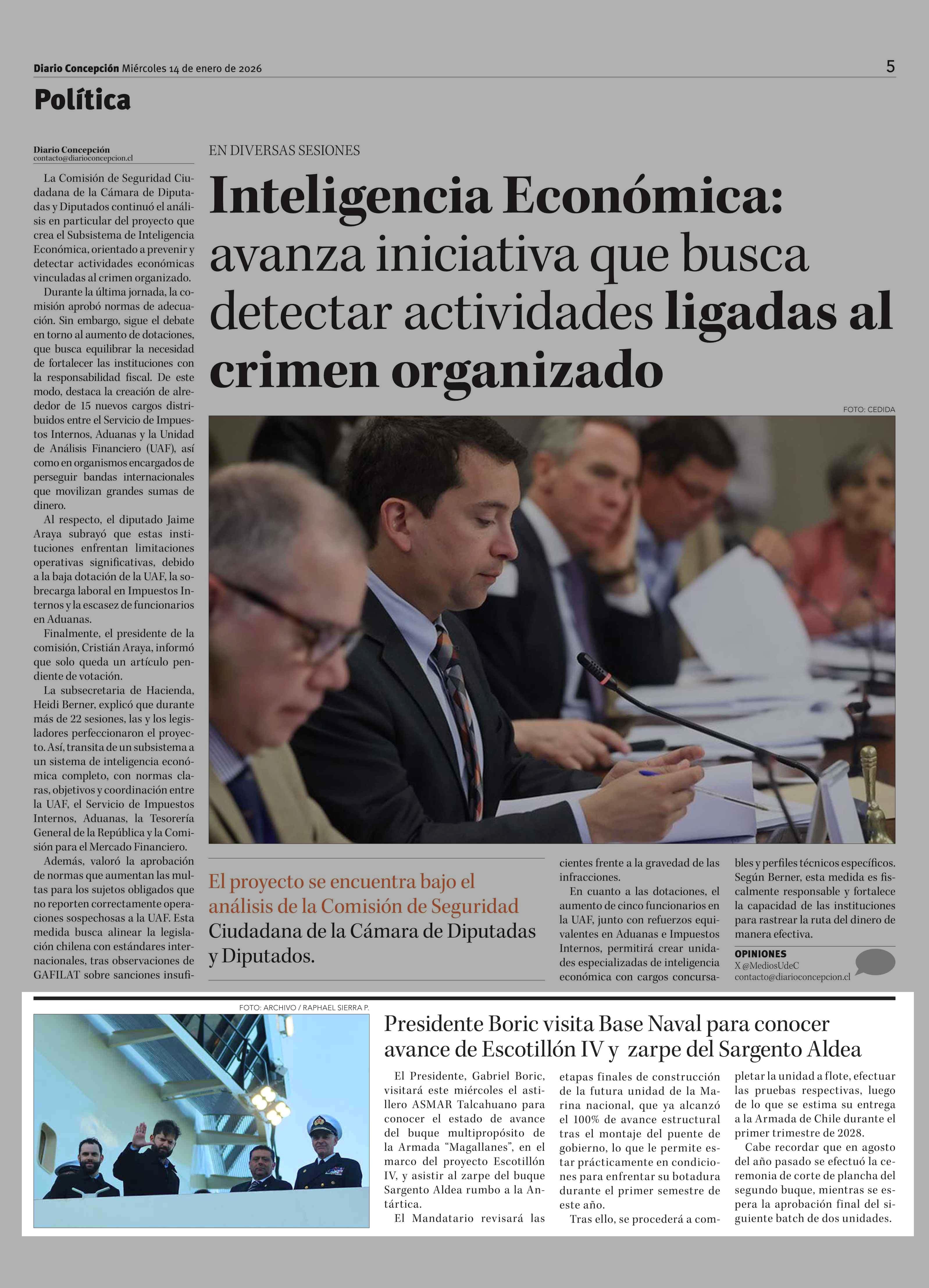 Presidente Boric visita Base Naval para conocer avance de Escotillón IV y zarpe del Sargento Aldea 14-01-2026 Diario Concepción |