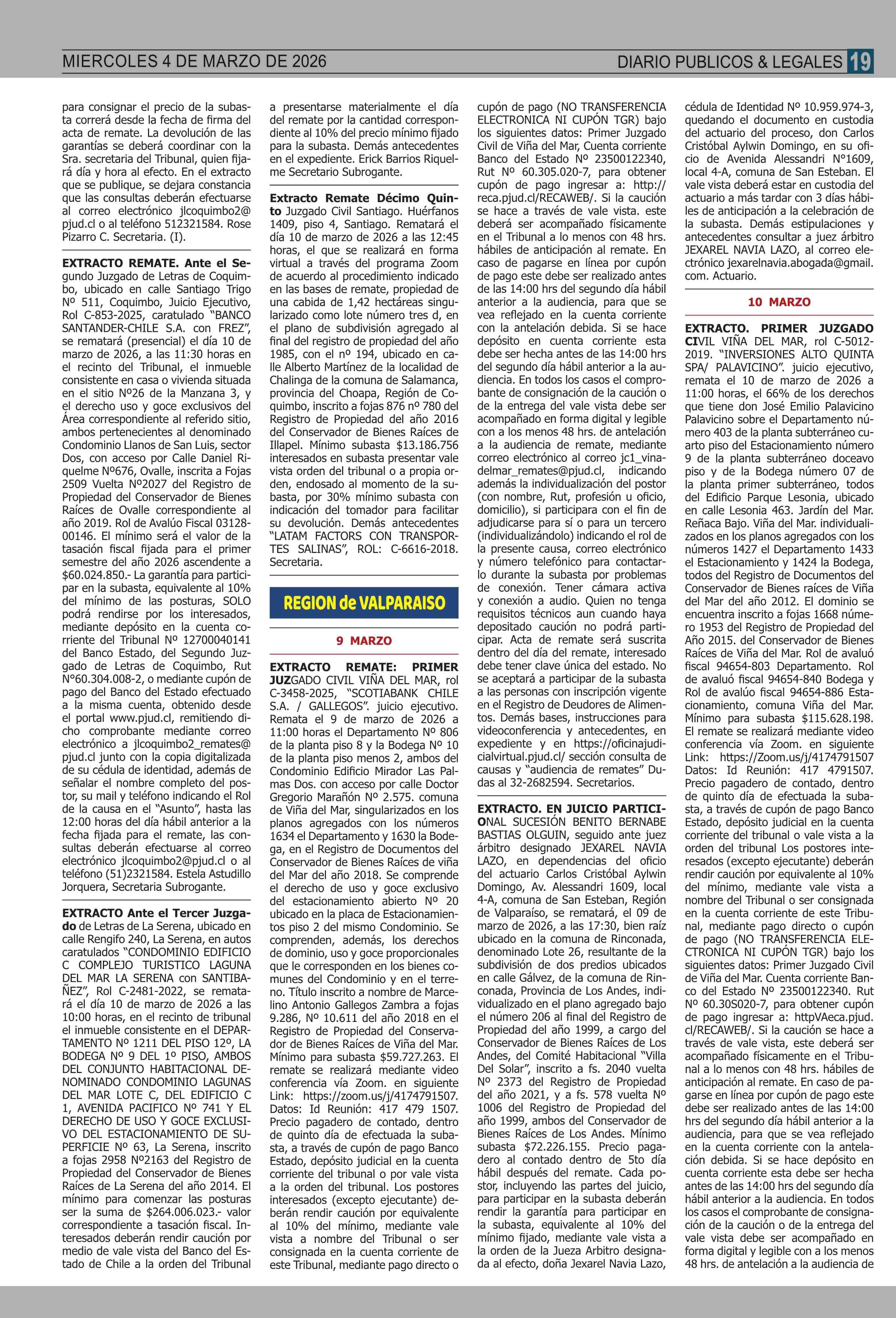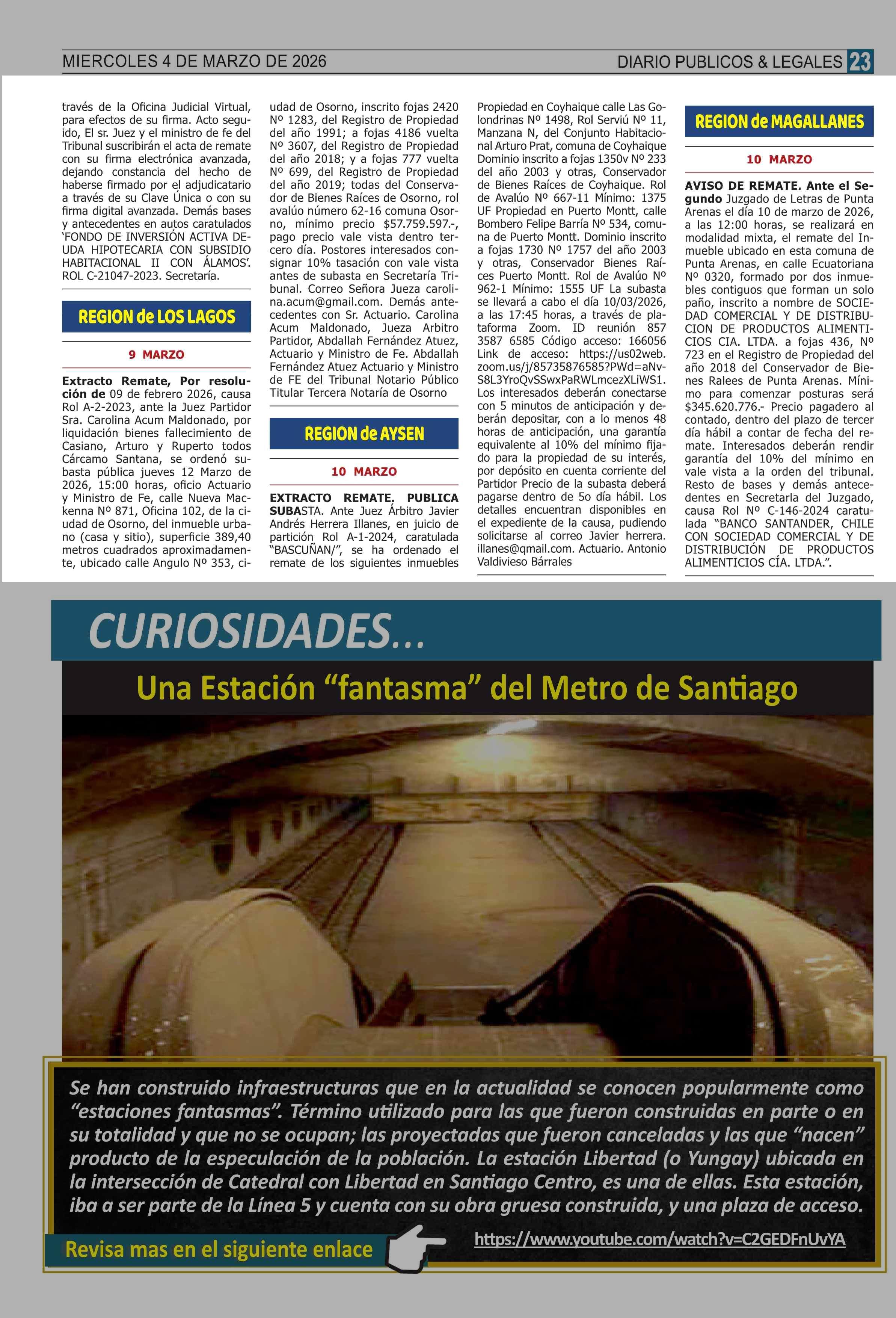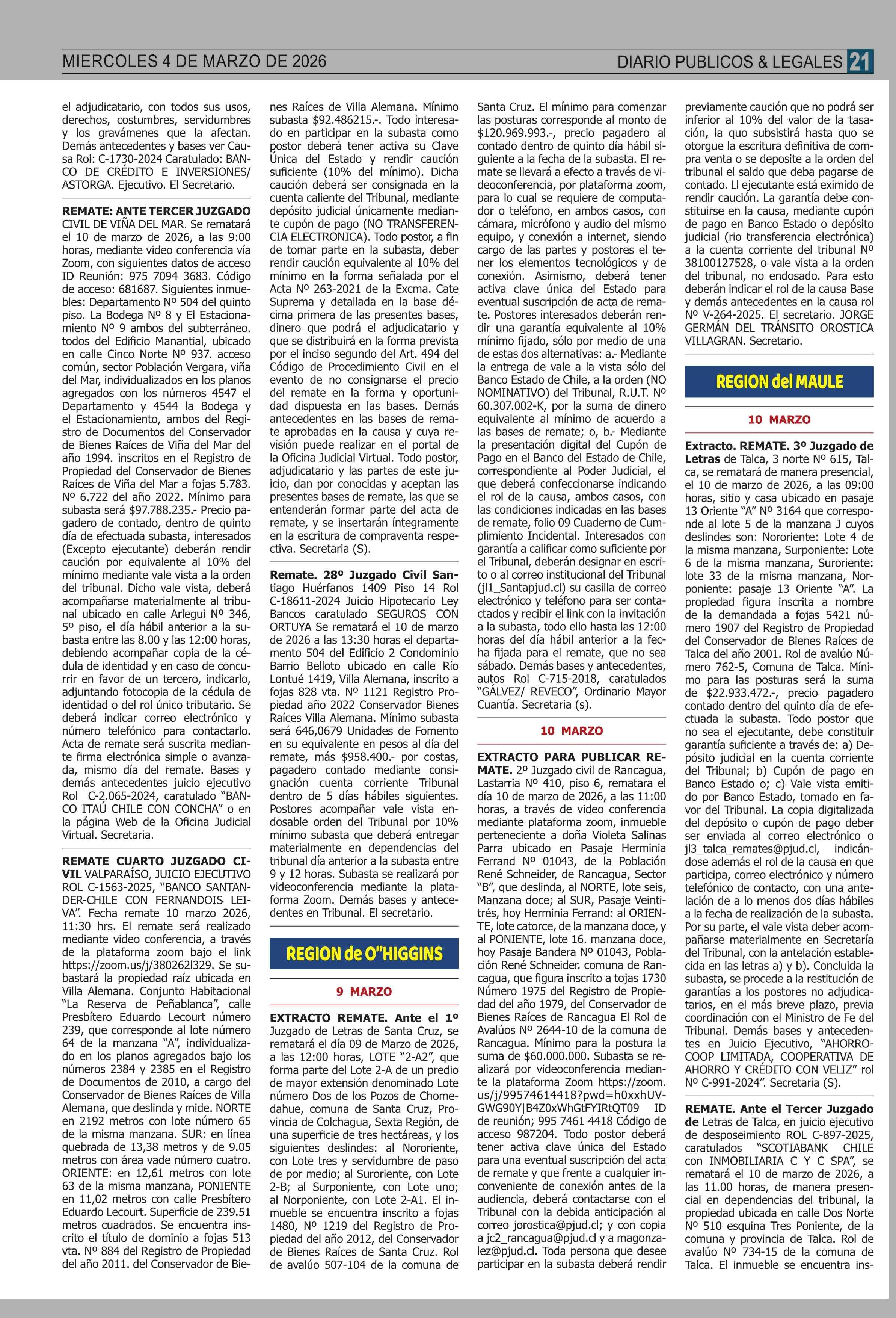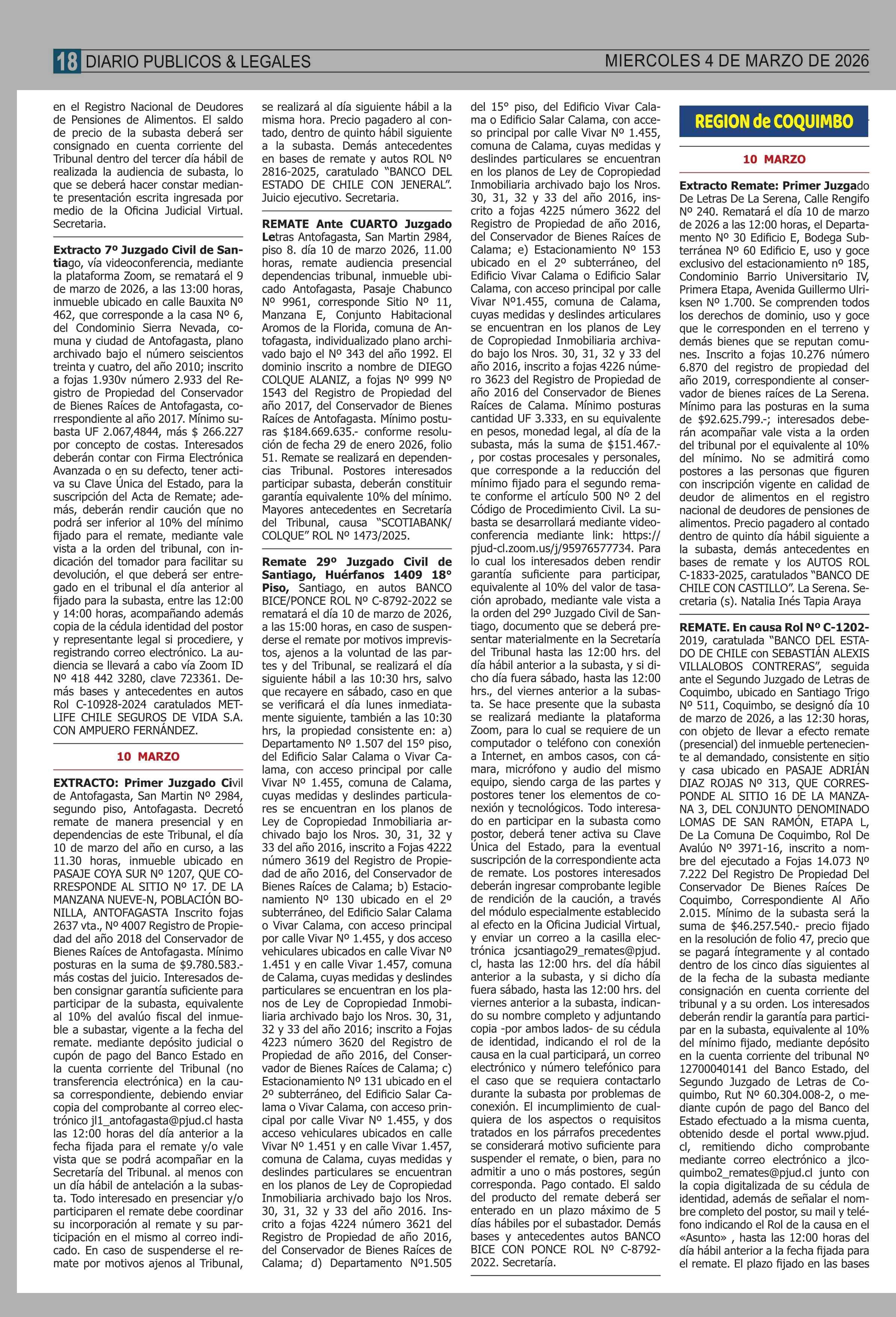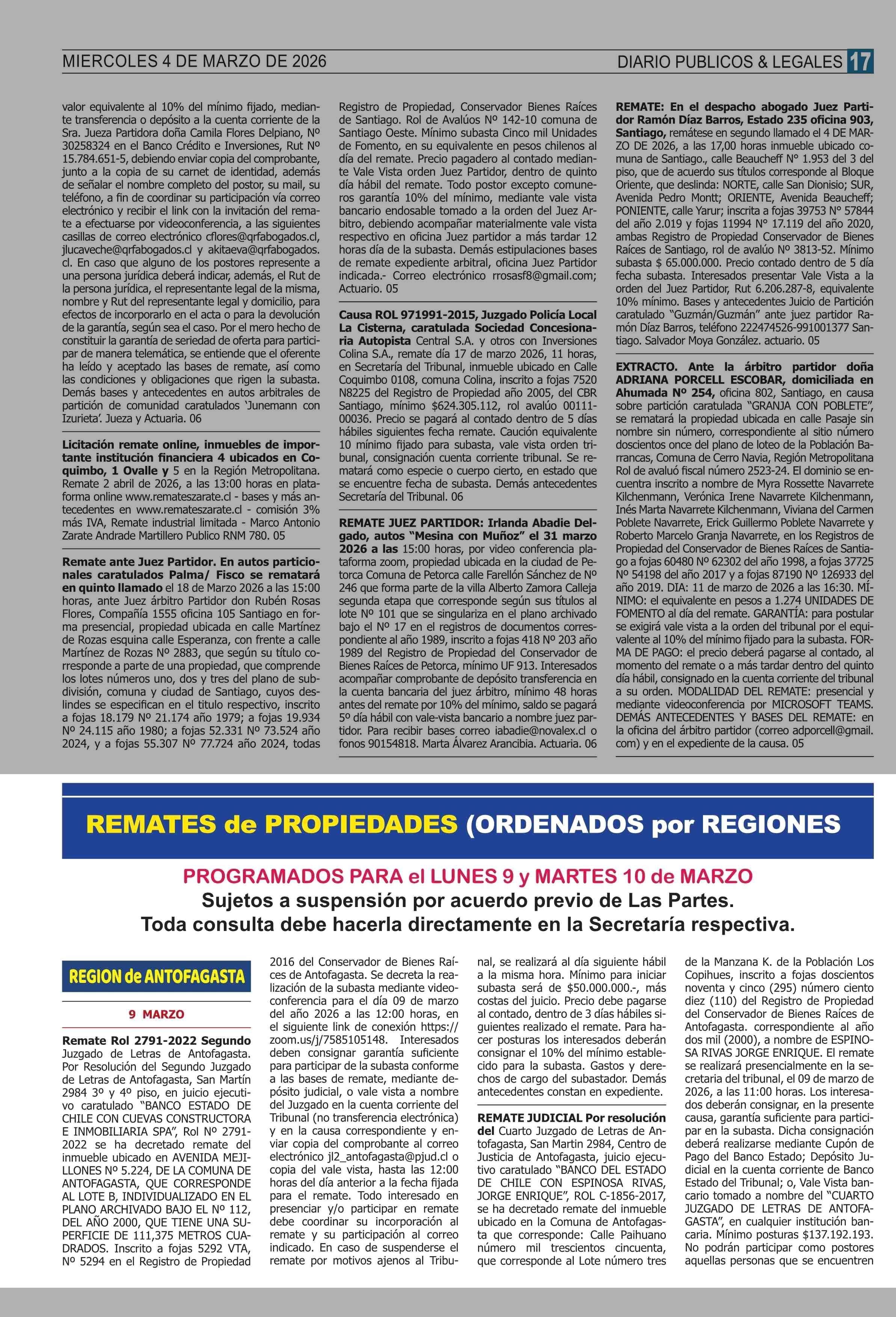 REMATES de PROPIEDADES (ORDENADOS por REGIONES 04-03-2026 P&L Públicos y Legales |