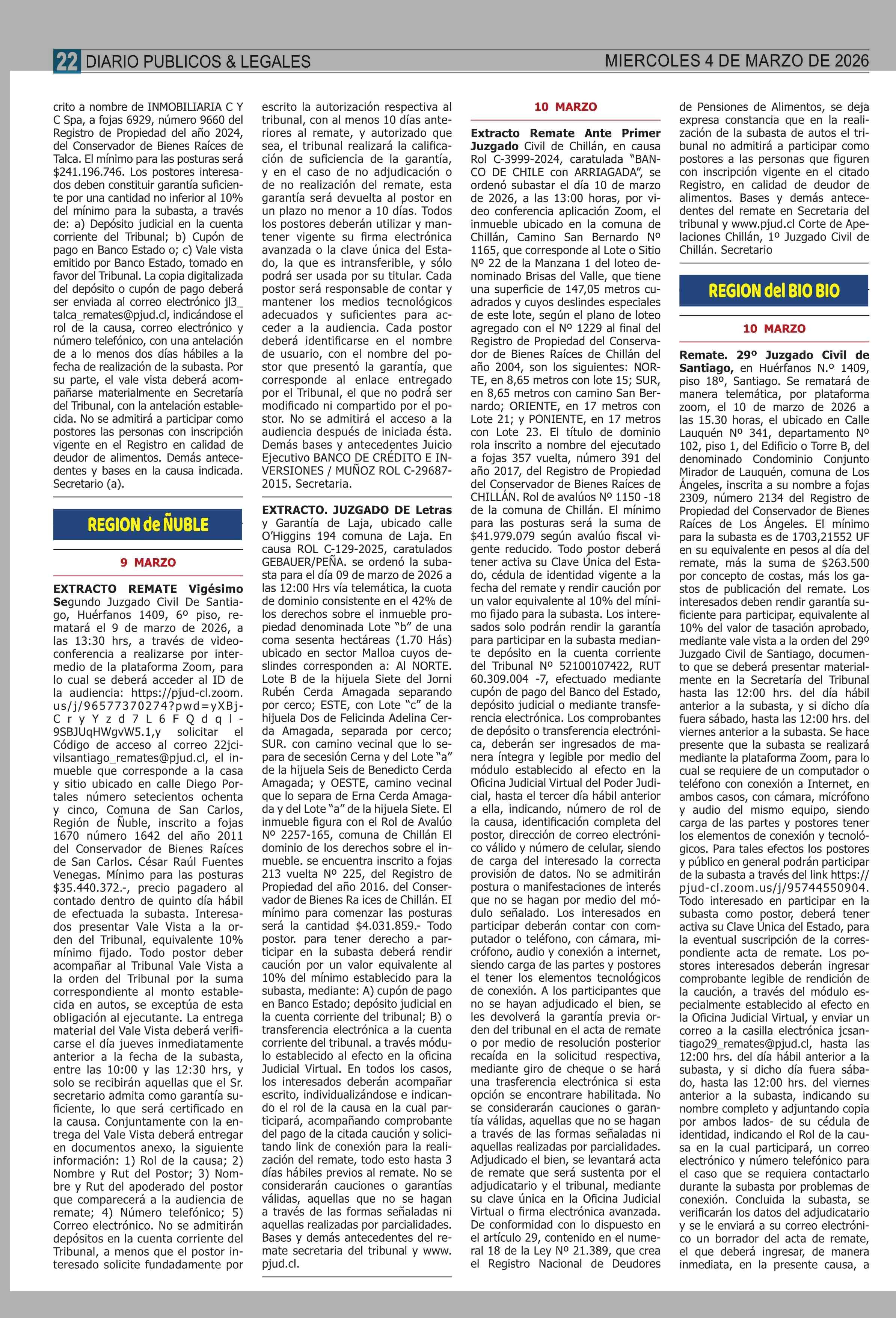 | Título: | REMATES de PROPIEDADES (ORDENADOS por REGIONES |