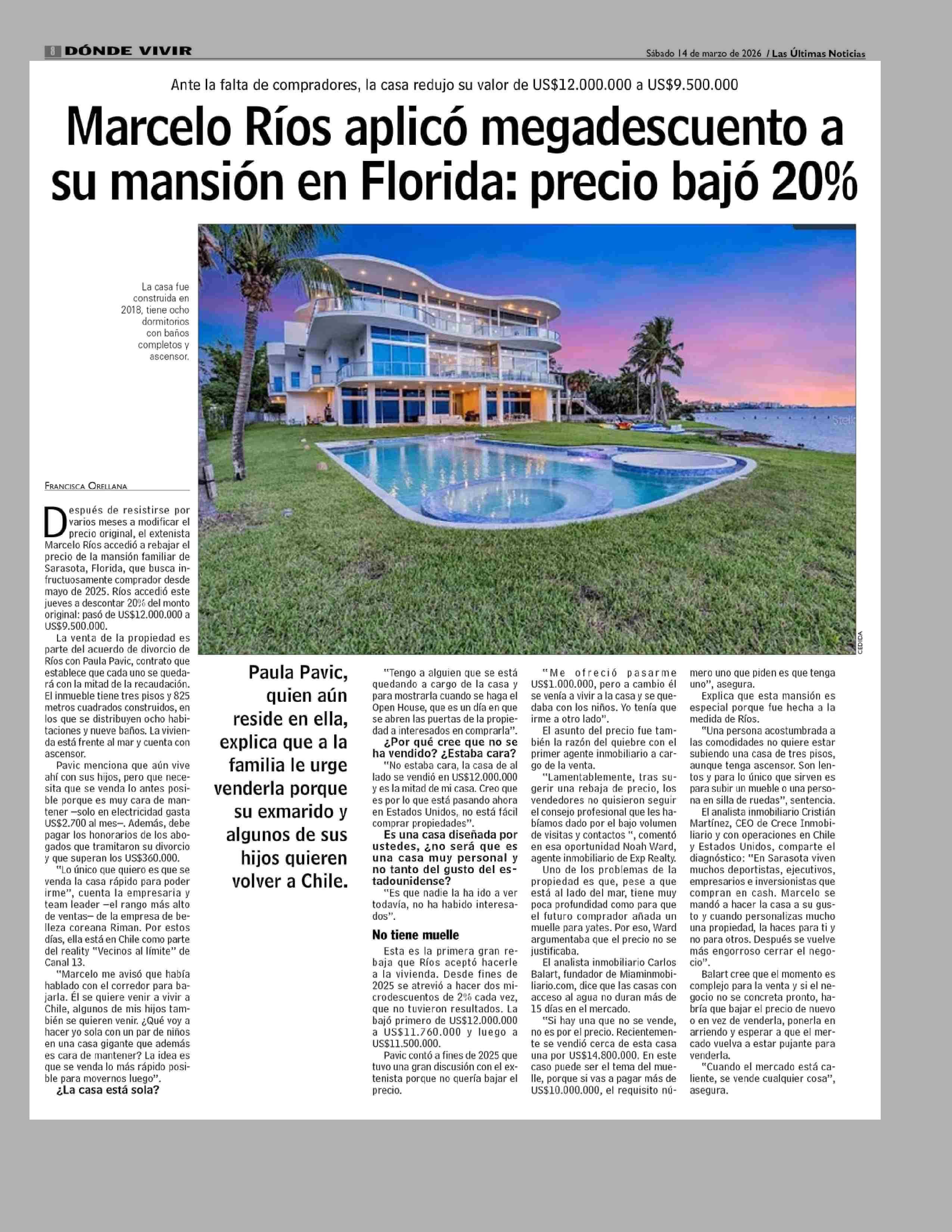 Título: Marcelo Ríos aplicó megadescuento a su mansión en Florida: precio bajó 20%