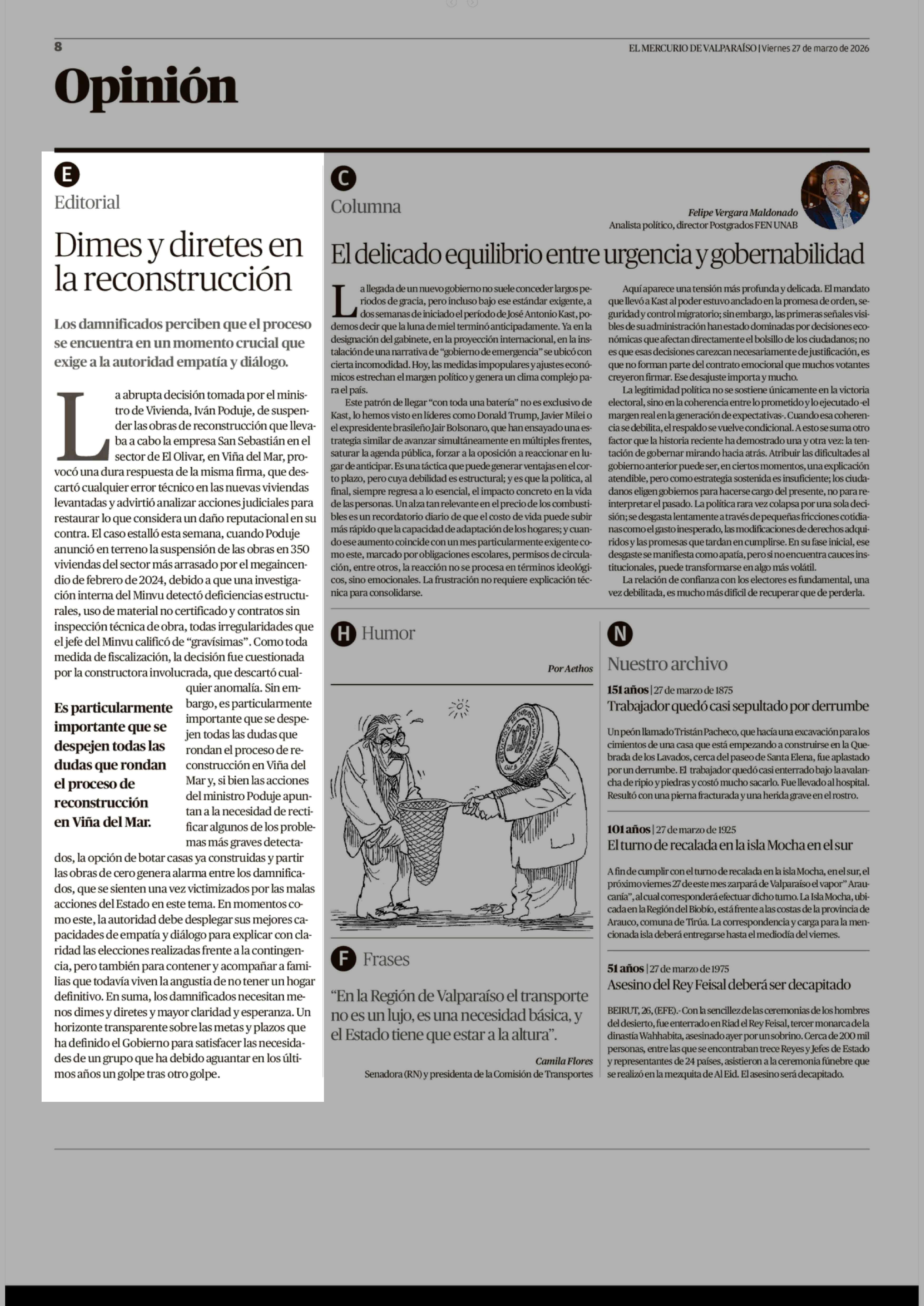 Dimes y diretes en la reconstrucción 27-03-2026 El Mercurio de Valparaíso |