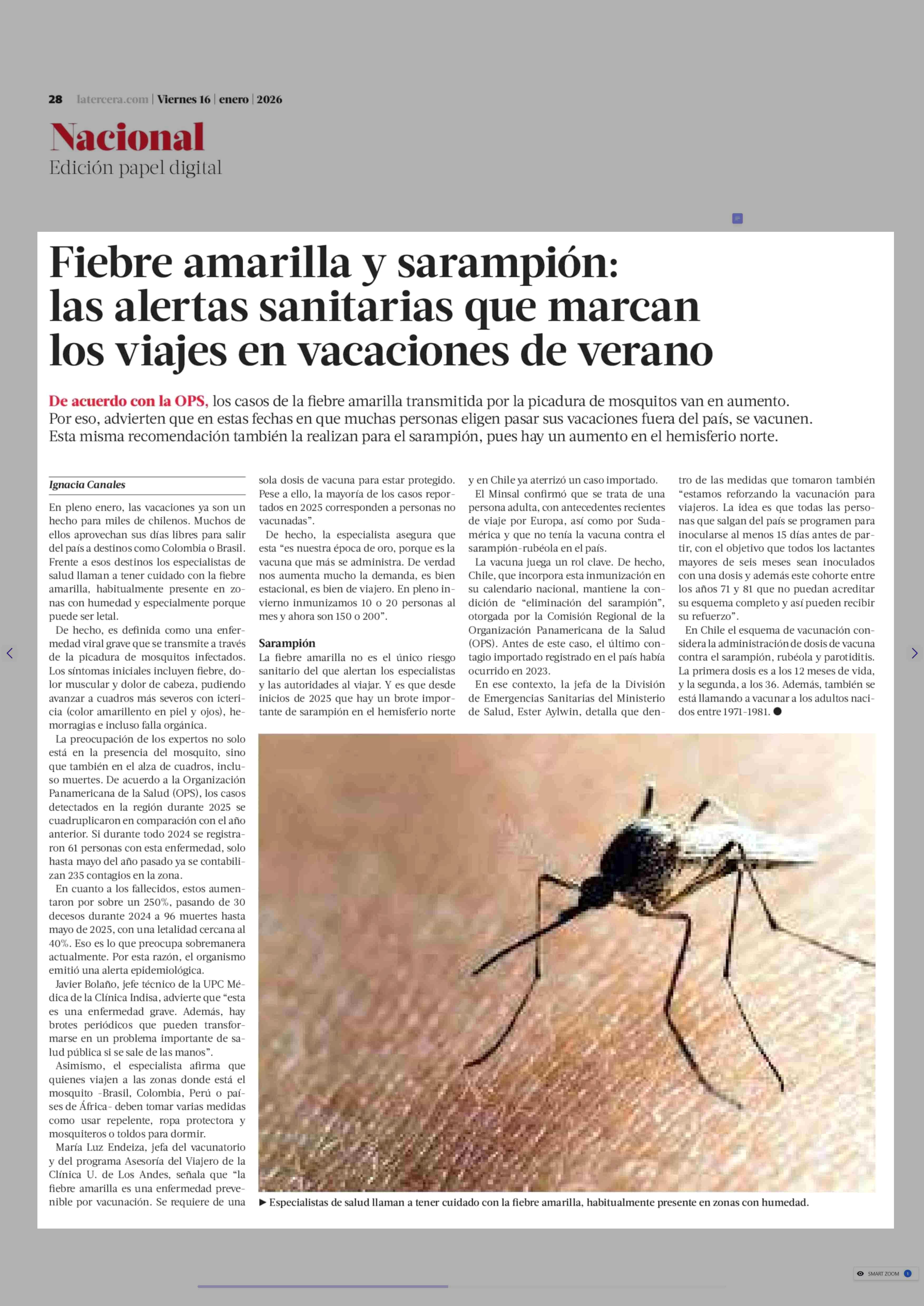 Fiebre amarilla y sarampión: las alertas sanitarias que marcan los viajes en vacaciones de verano 16-01-2026 La Tercera |