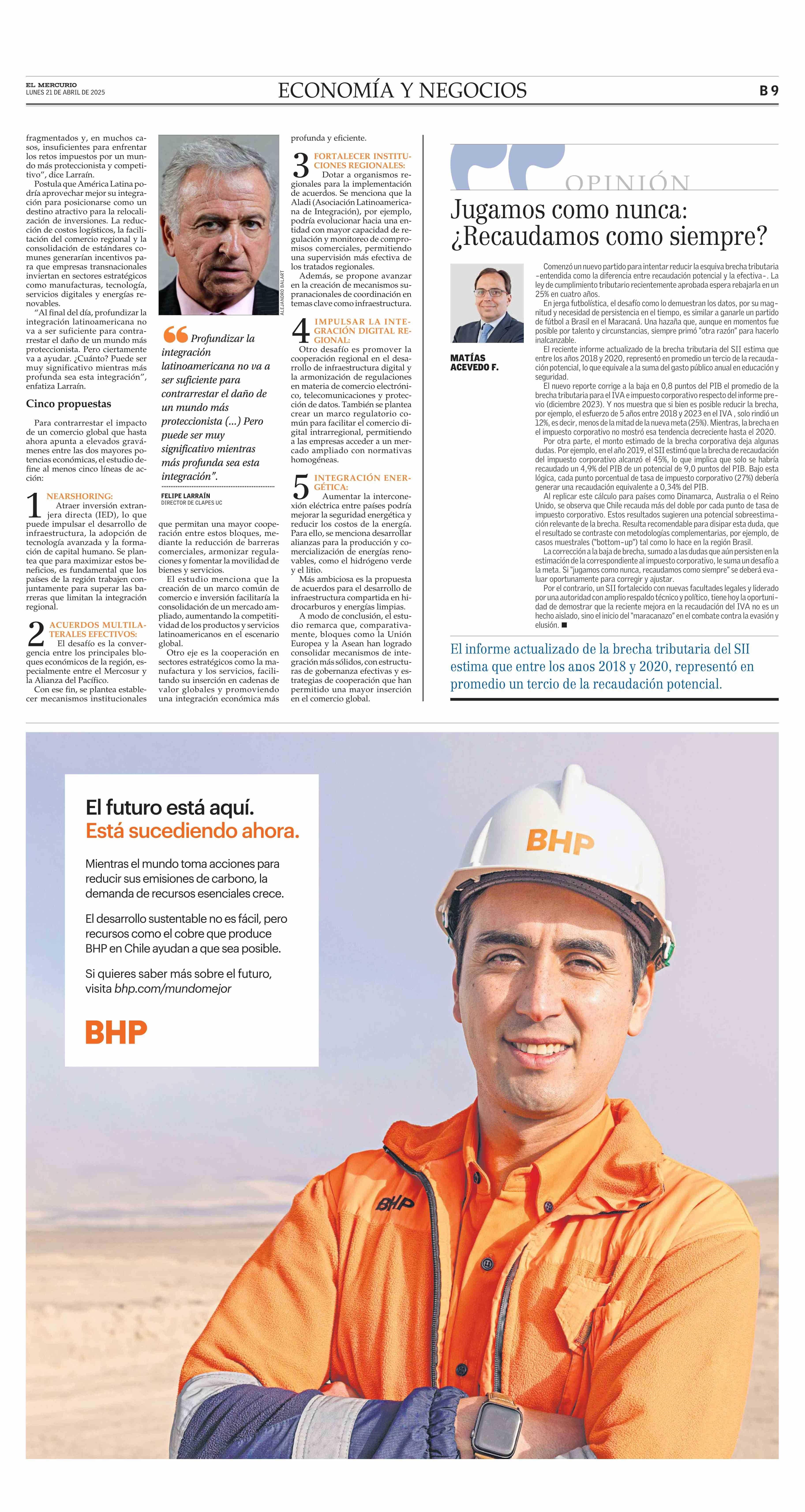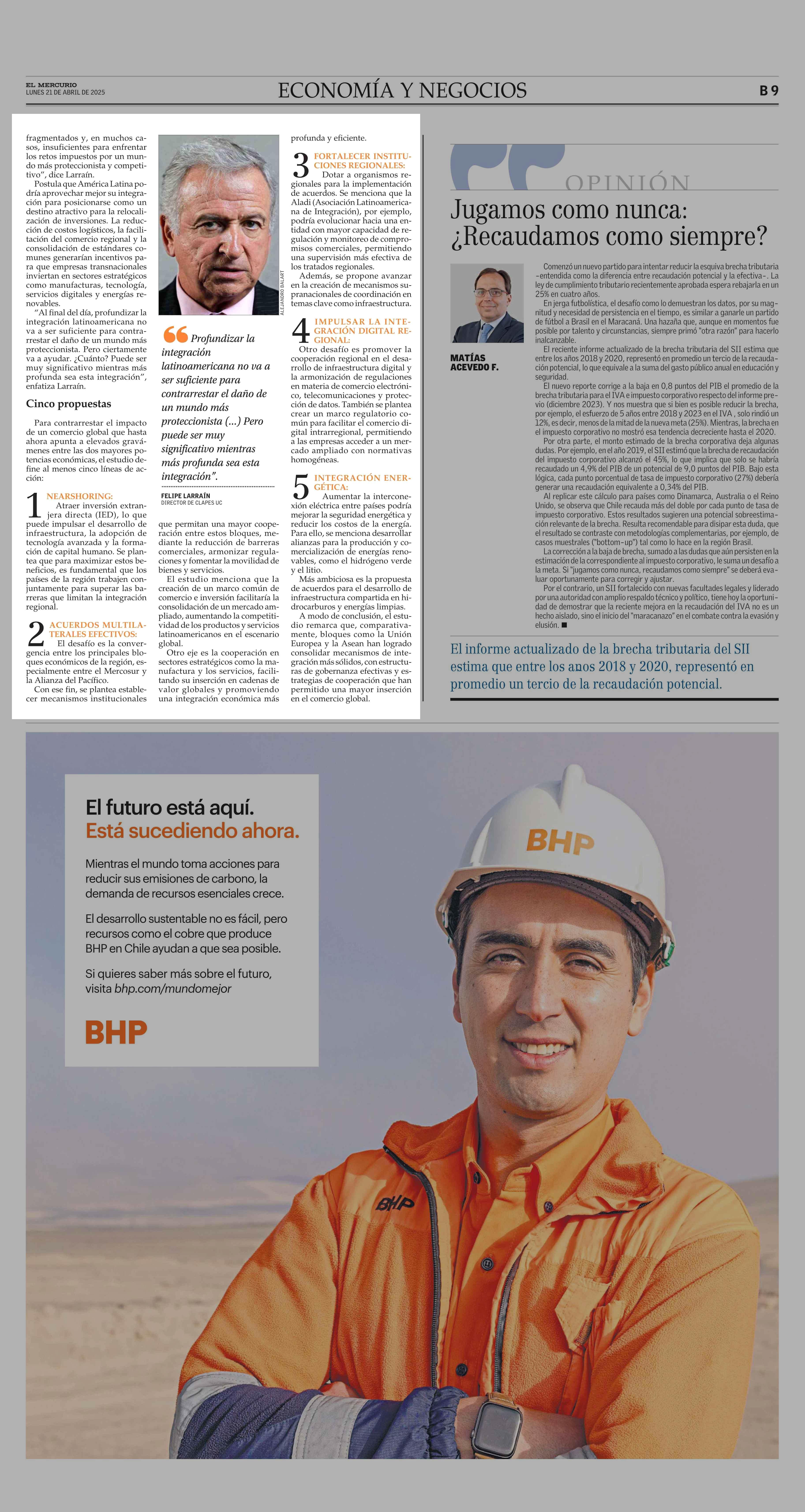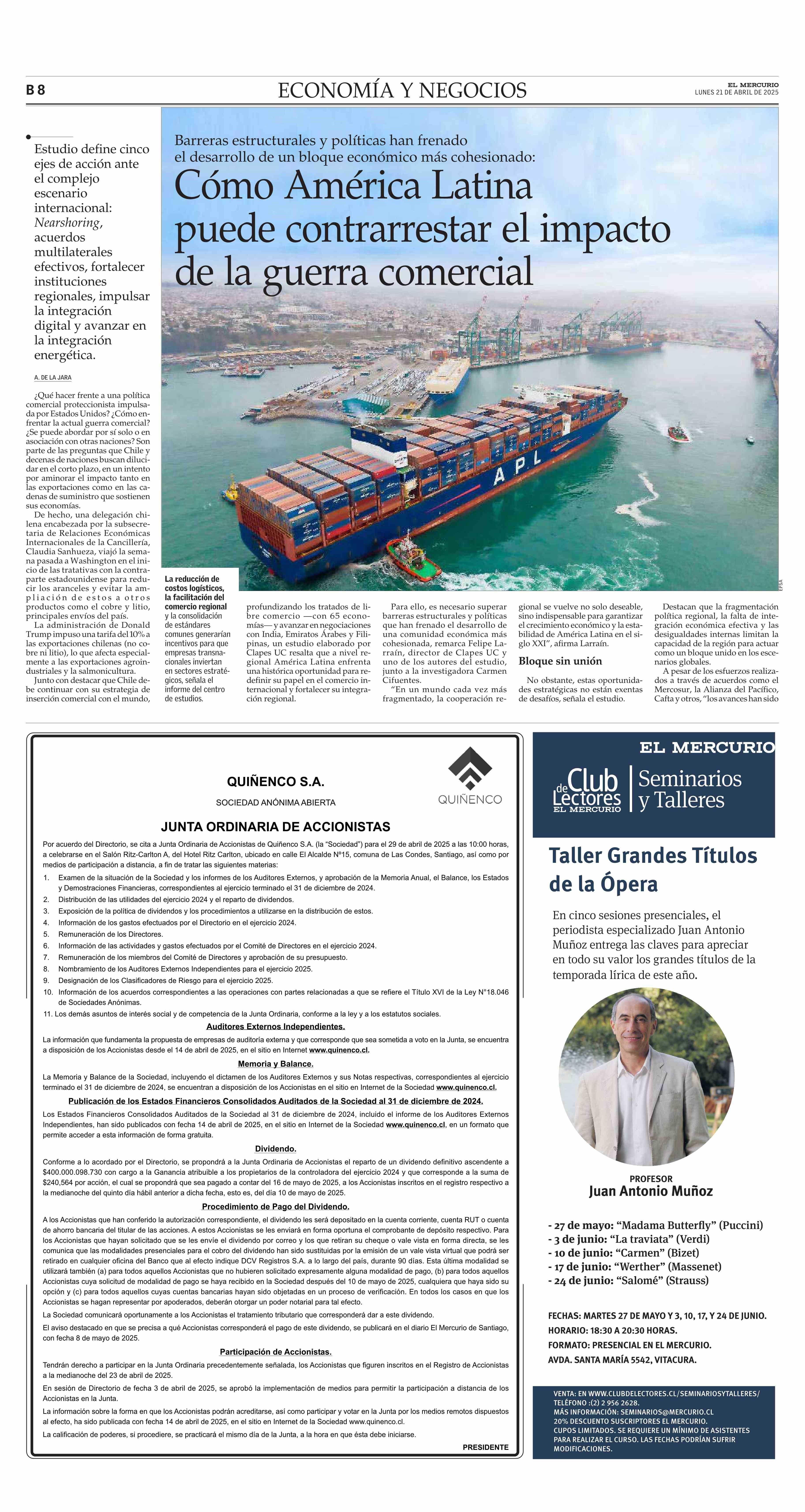 Cómo América Latina puede contrarrestar el impacto de la guerra comercial 21-04-2025 El Mercurio |