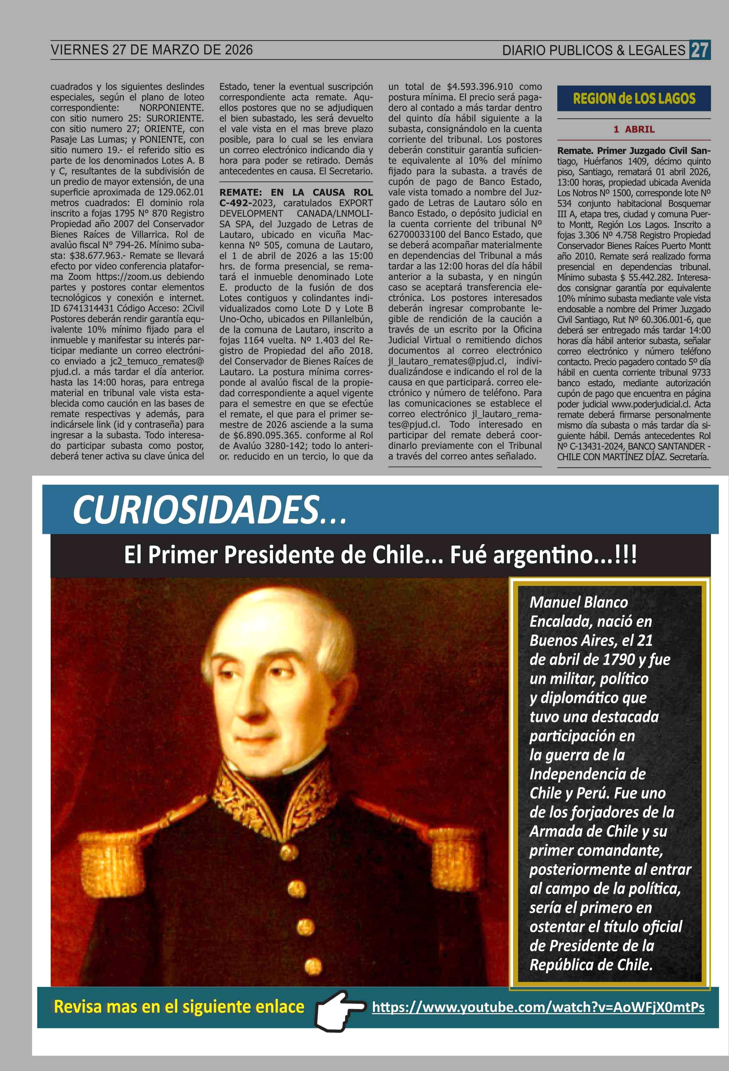 Fecha: 27-03-2026 Sector: Noticia general Región: Región Metropolitana de Santiago
