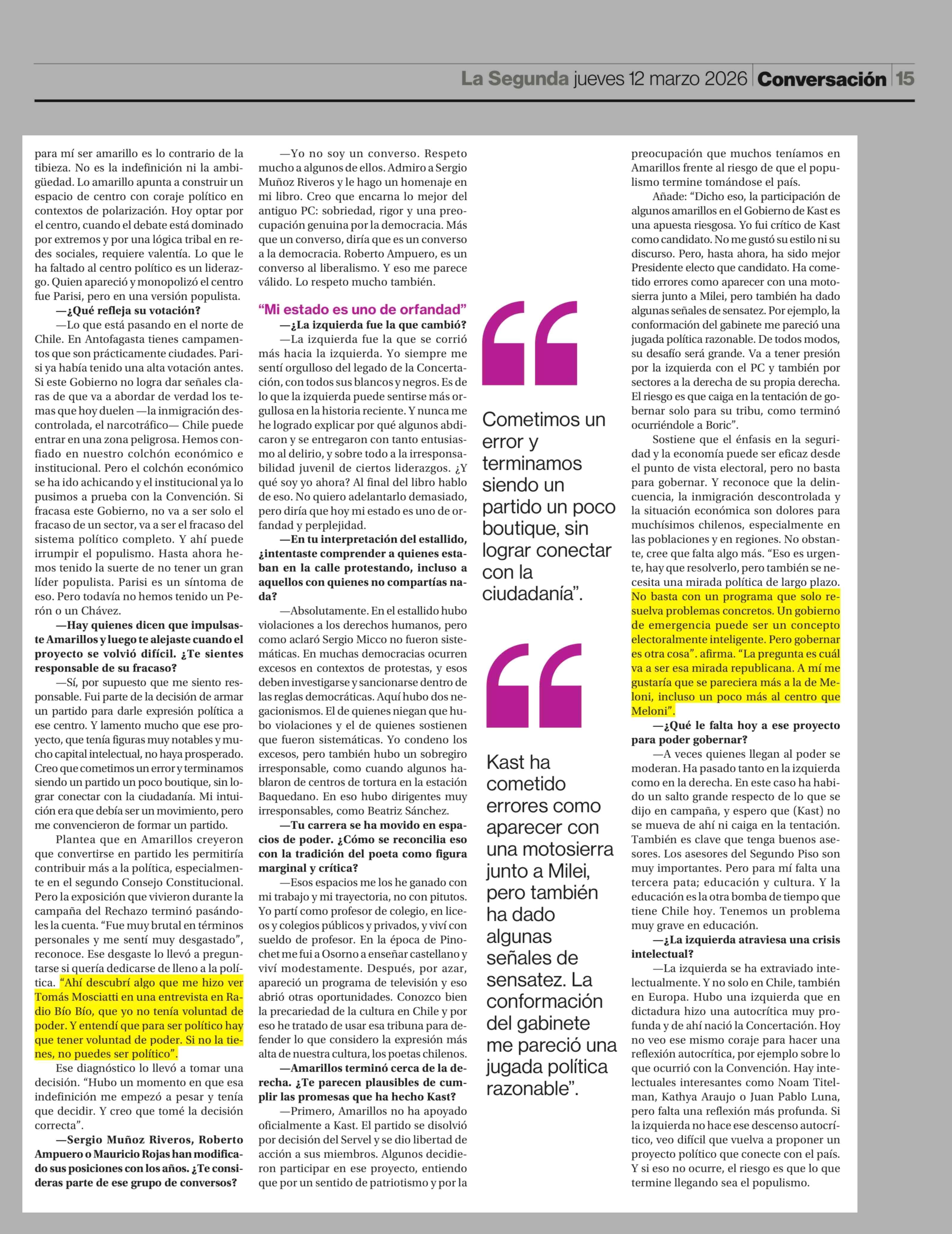 "La participación de algunos amarillos en el Gobierno de Kast es una apuesta riesgosa® 12-03-2026 La Segunda |