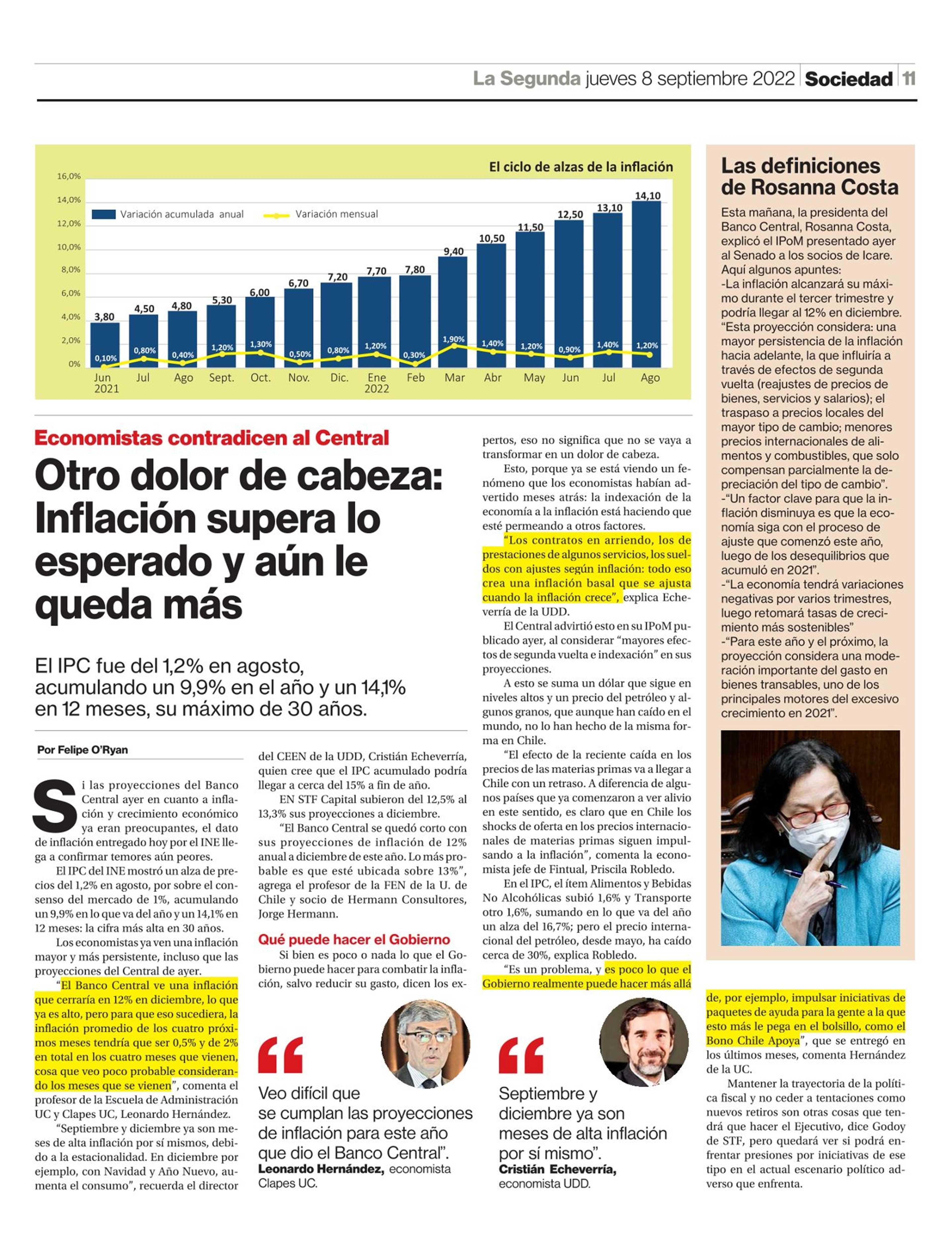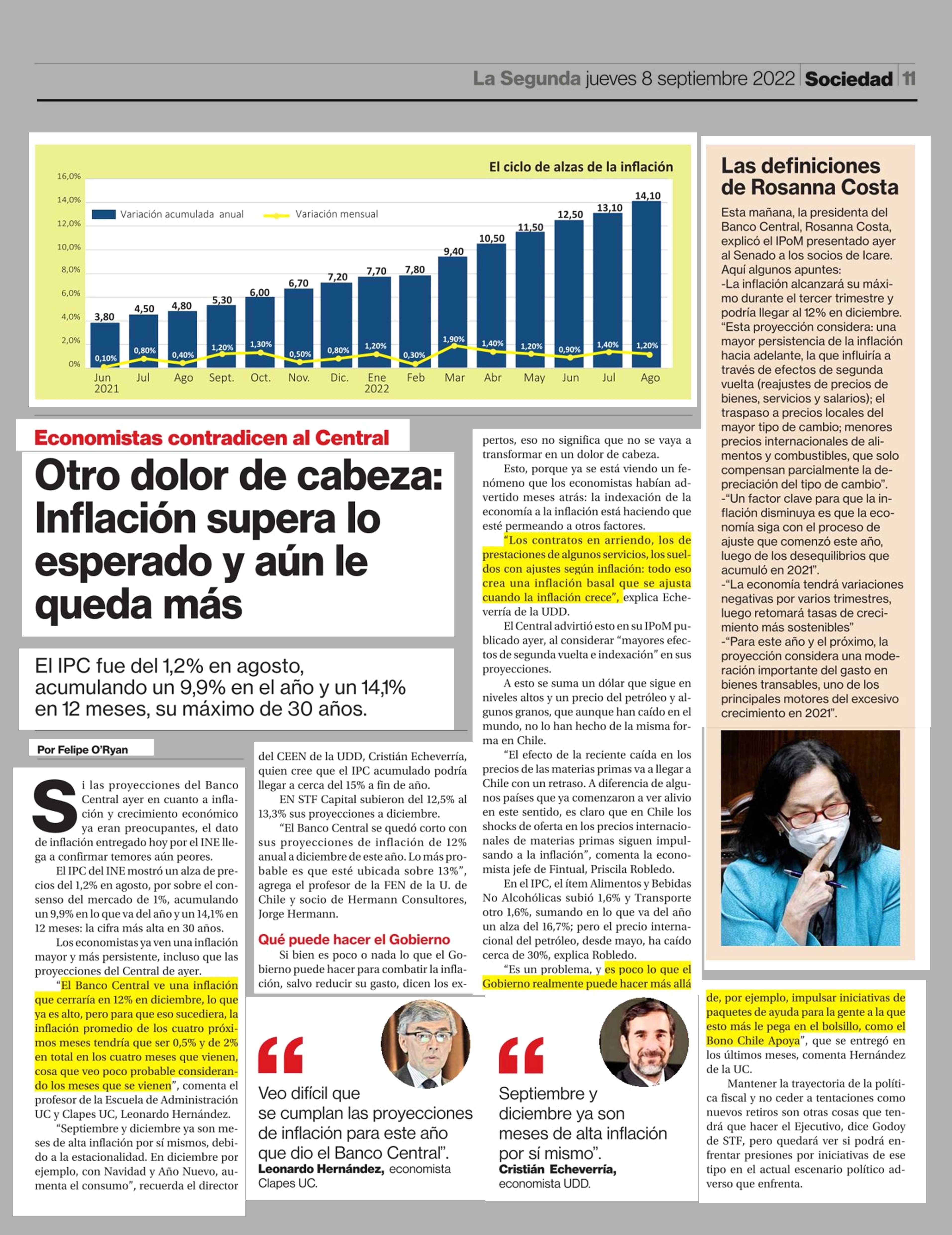 Otro dolor de cabeza: Inflación supera lo esperado y aún le queda más 08-09-2022 La Segunda |
