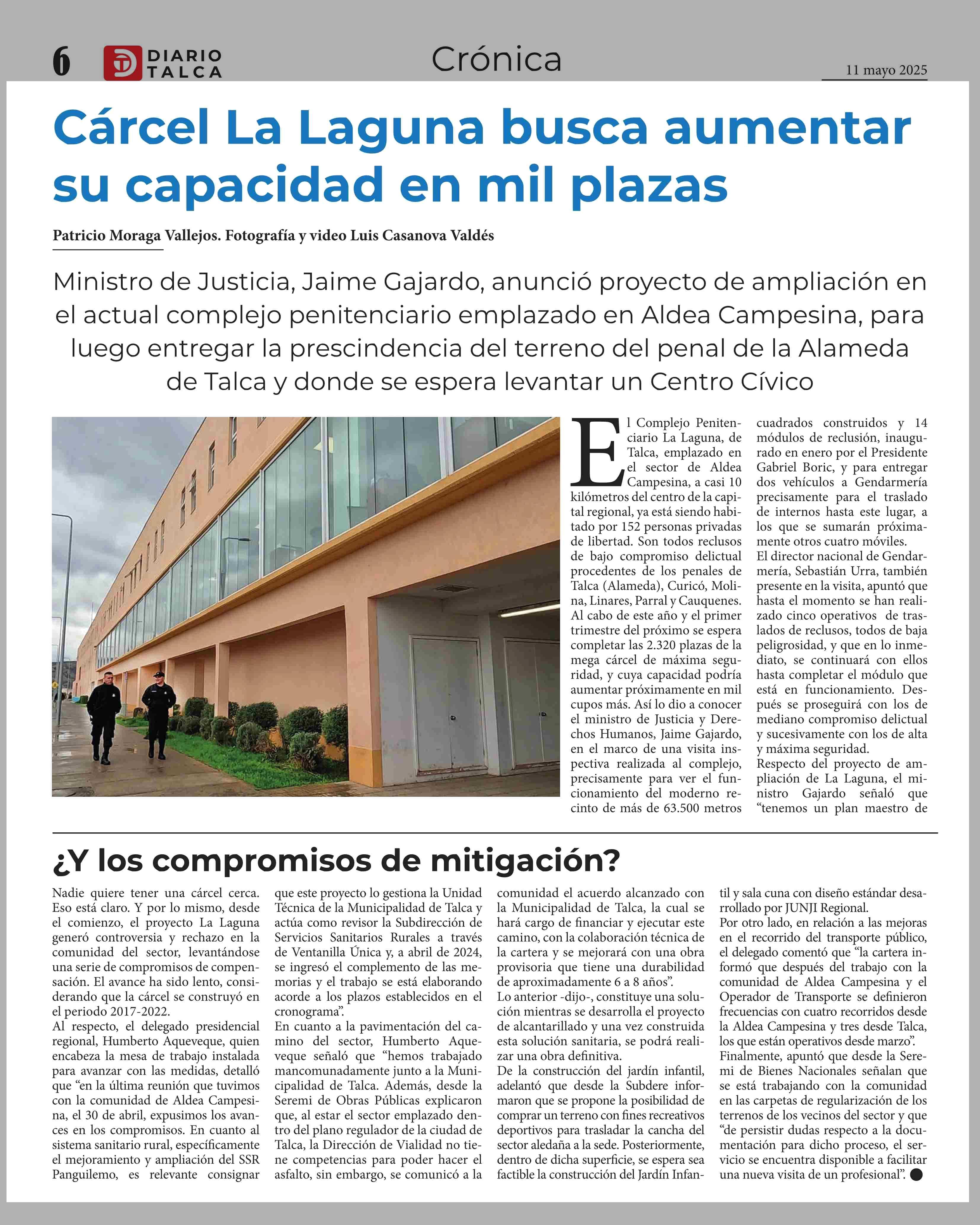 Cárcel La Laguna busca aumentar su capacidad en mil plazas 11-05-2025 Diario Talca |