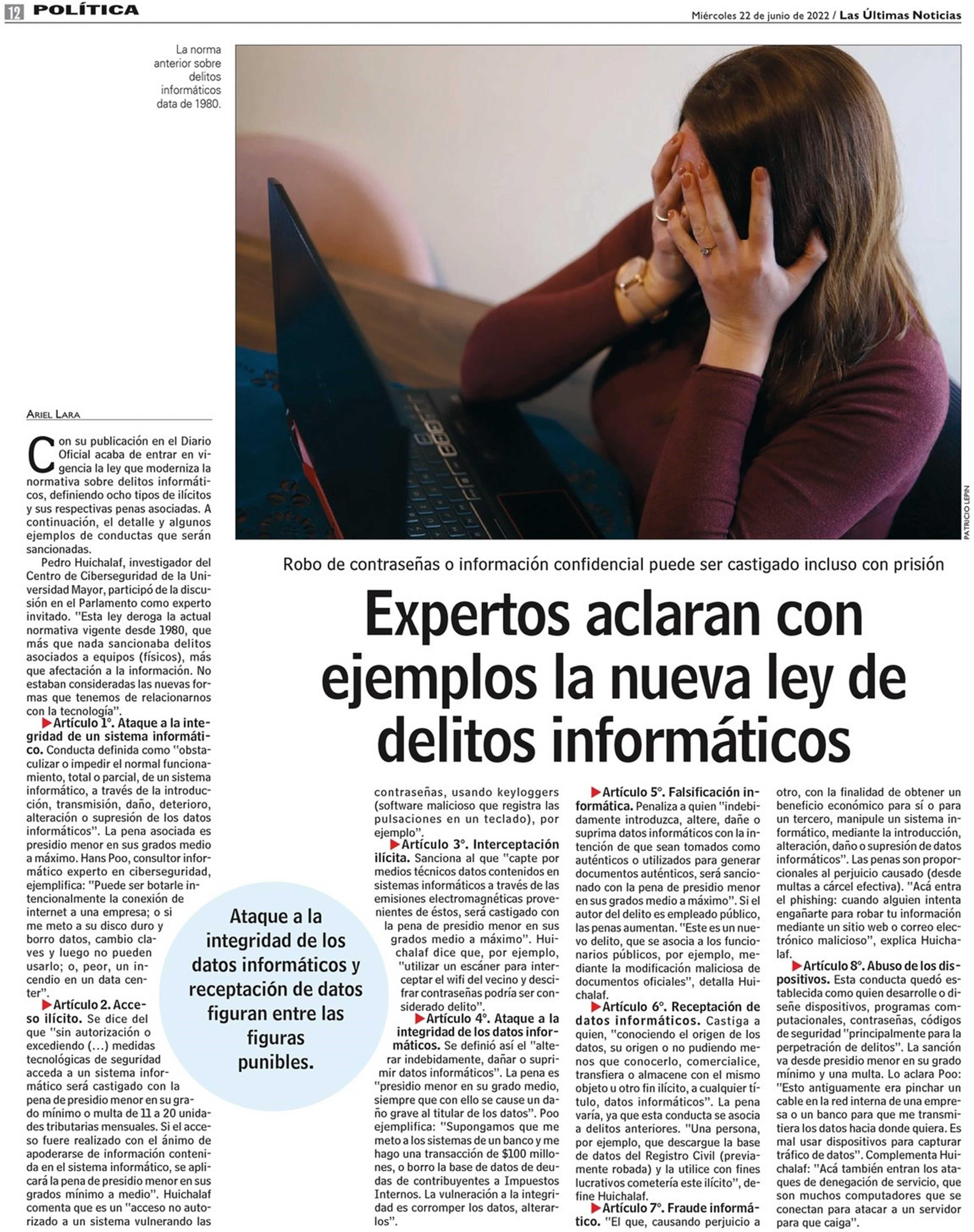 Expertos aclaran con ejemplos la nueva ley de delitos informáticos 22-06-2022 Las Últimas Noticias |