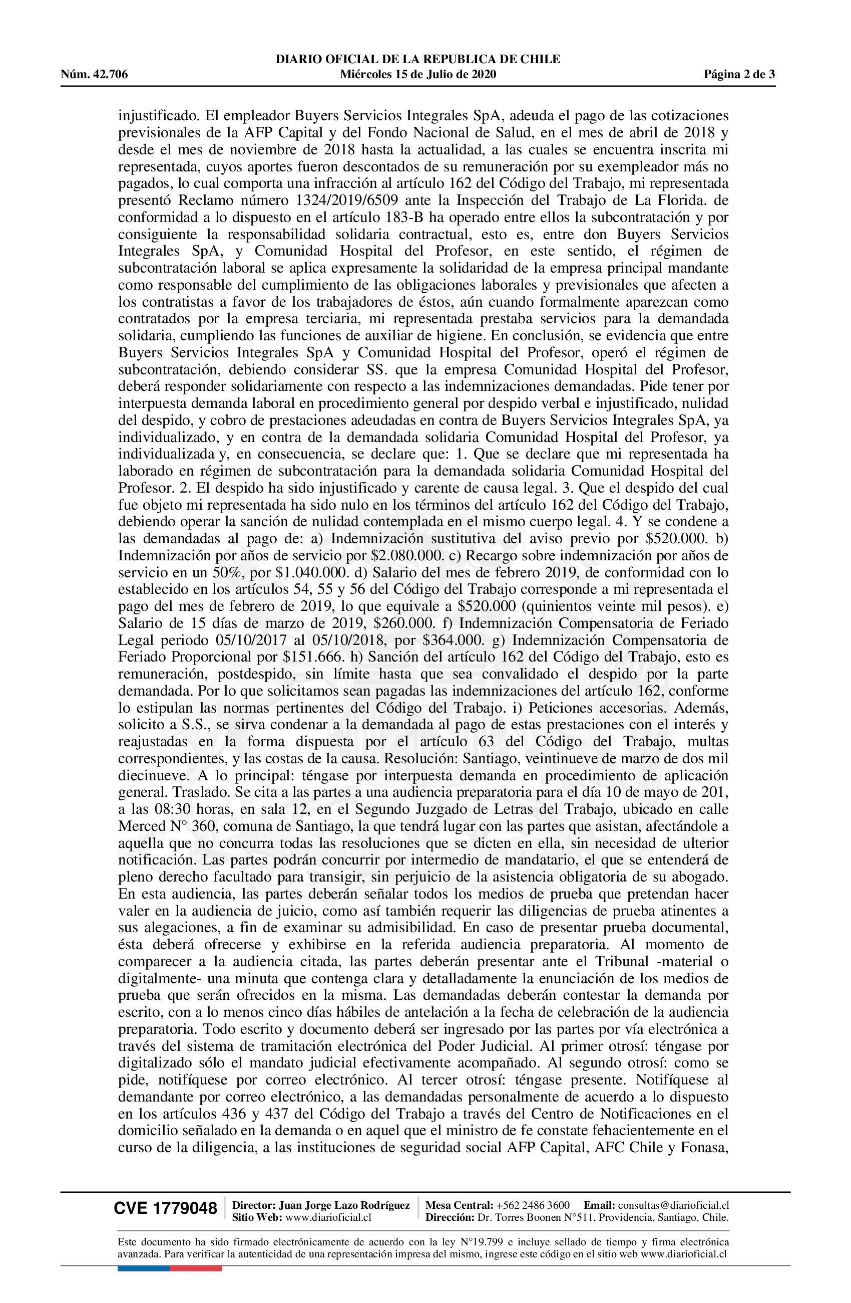 | Fuente: | Diario Oficial Edición Electrónica (Diario Oficial de Chile - 3 Public. Judiciales) | Página(s): | 405-407 |