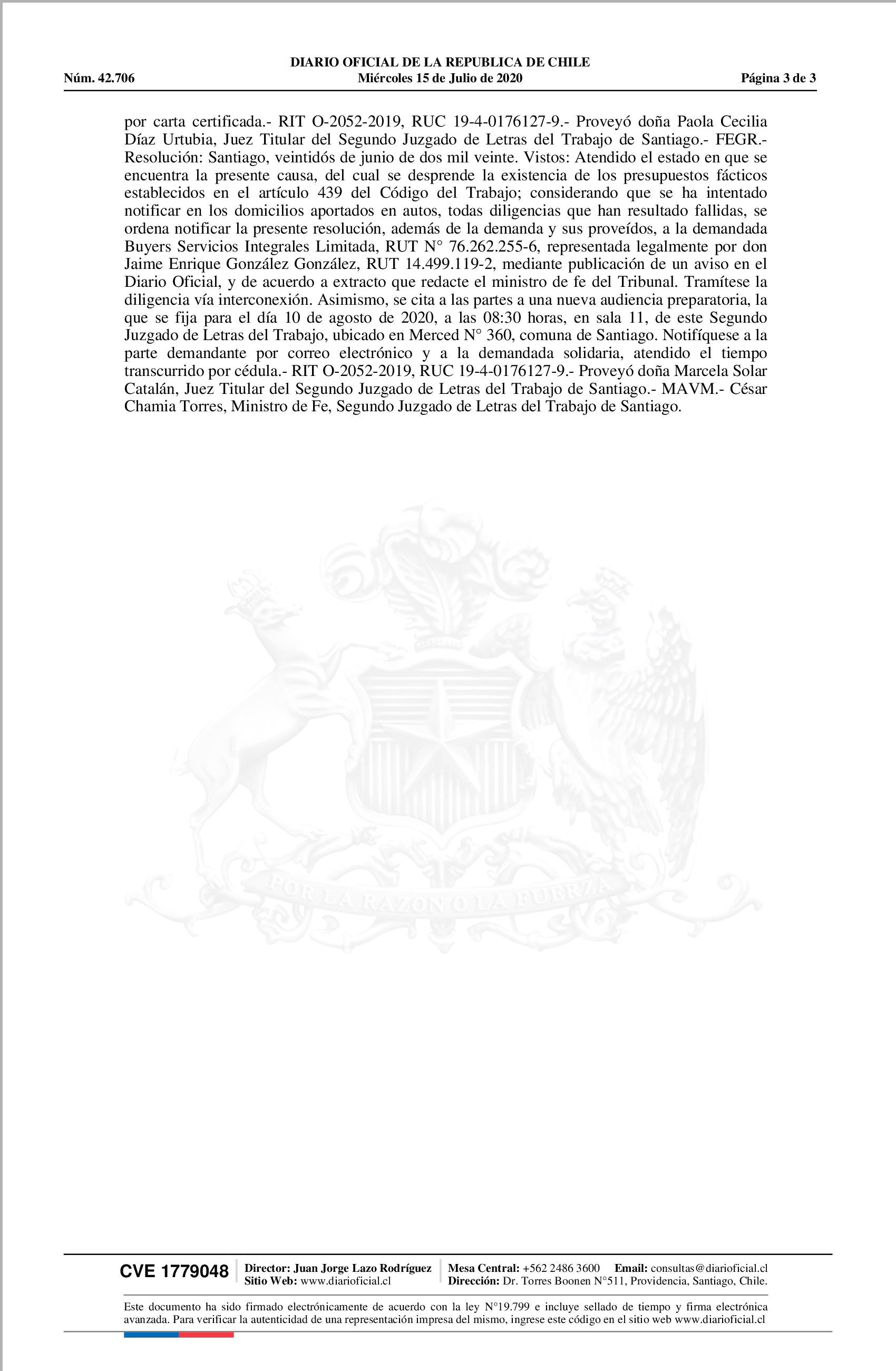 Notificación 15-07-2020 Diario Oficial Edición Electrónica |