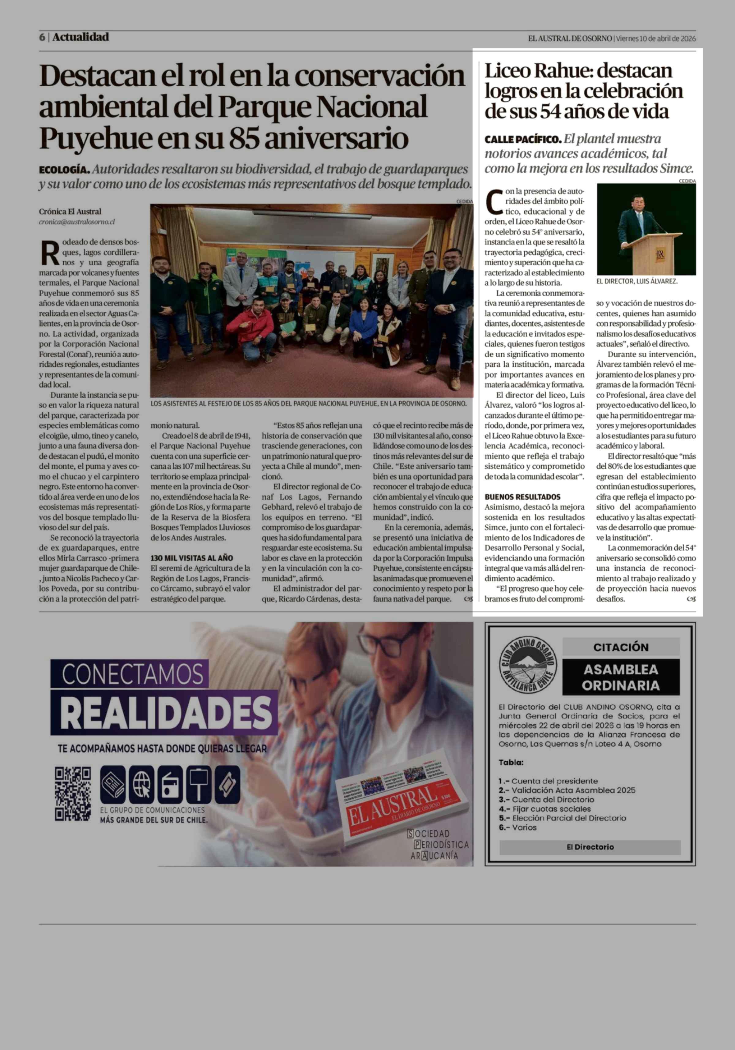 Liceo Rahue: destacan logros en la celebración de sus 54 años de vida 10-04-2026 El Austral de Osorno |