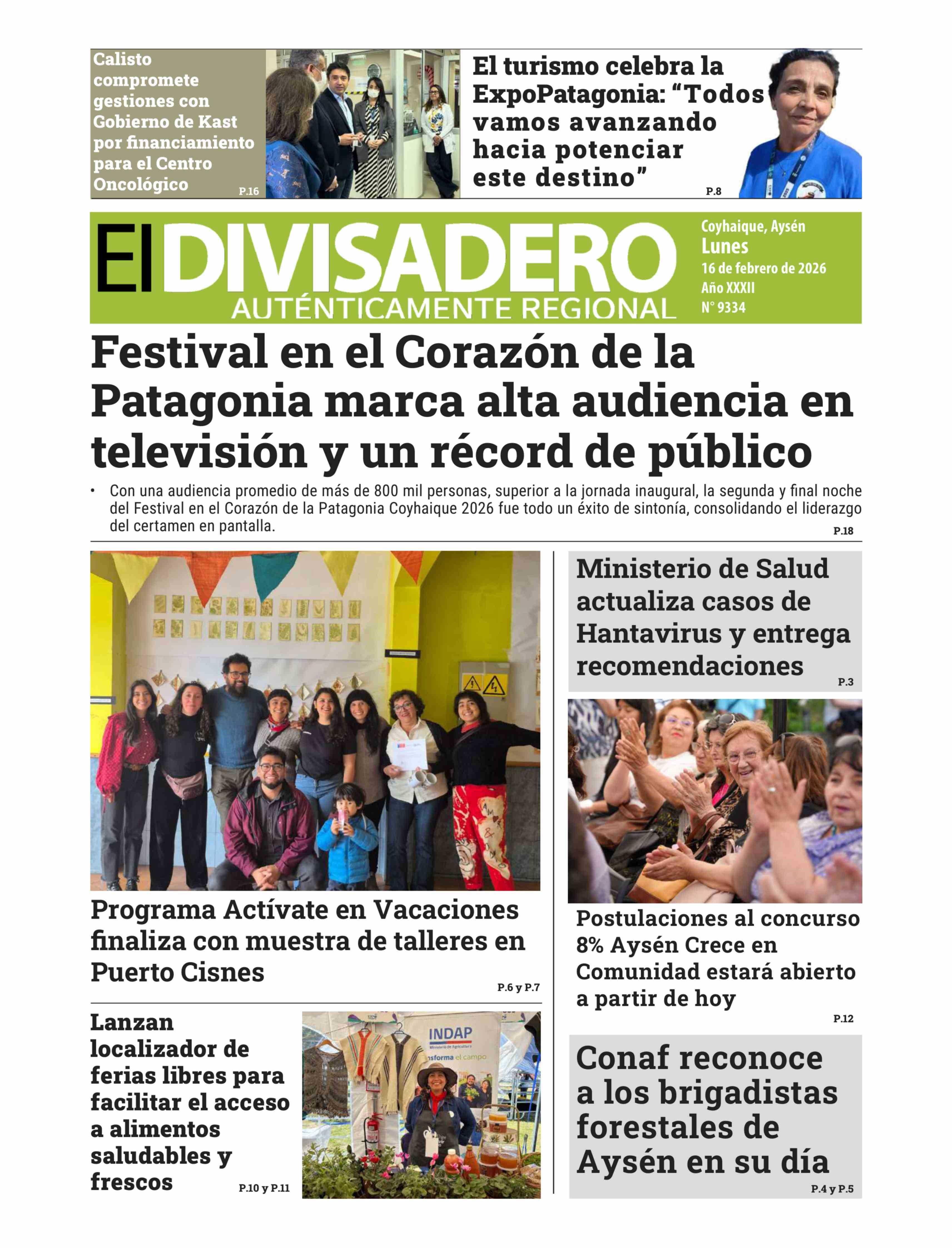Fecha: 16-02-2026 Sector: Portada Región: Región Aysén del General Carlos Ibáñez del Campo