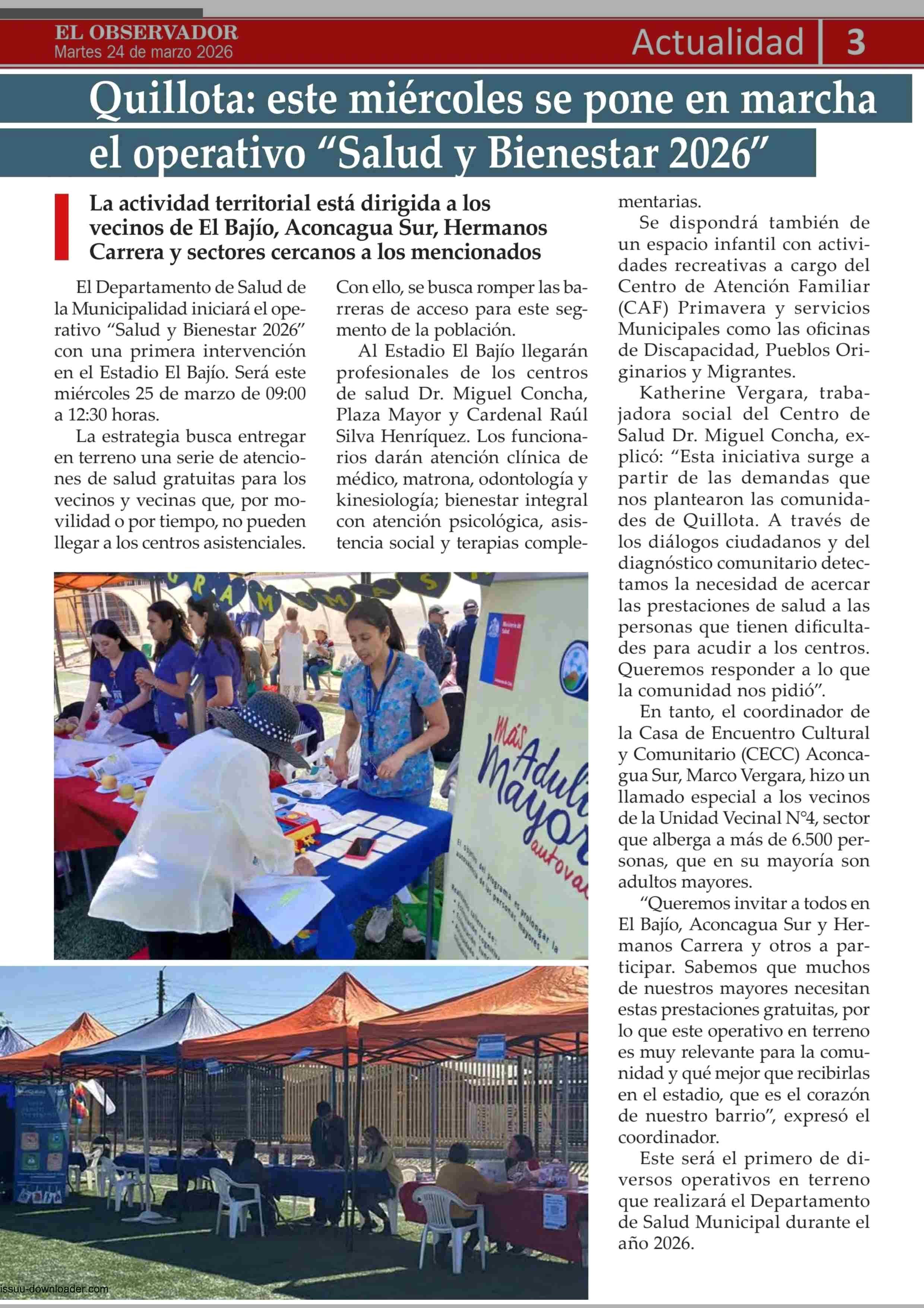 Quillota: este miércoles se pone en marcha el operativo “Salud y Bienestar 2026” 24-03-2026 El Observador Vespertino |