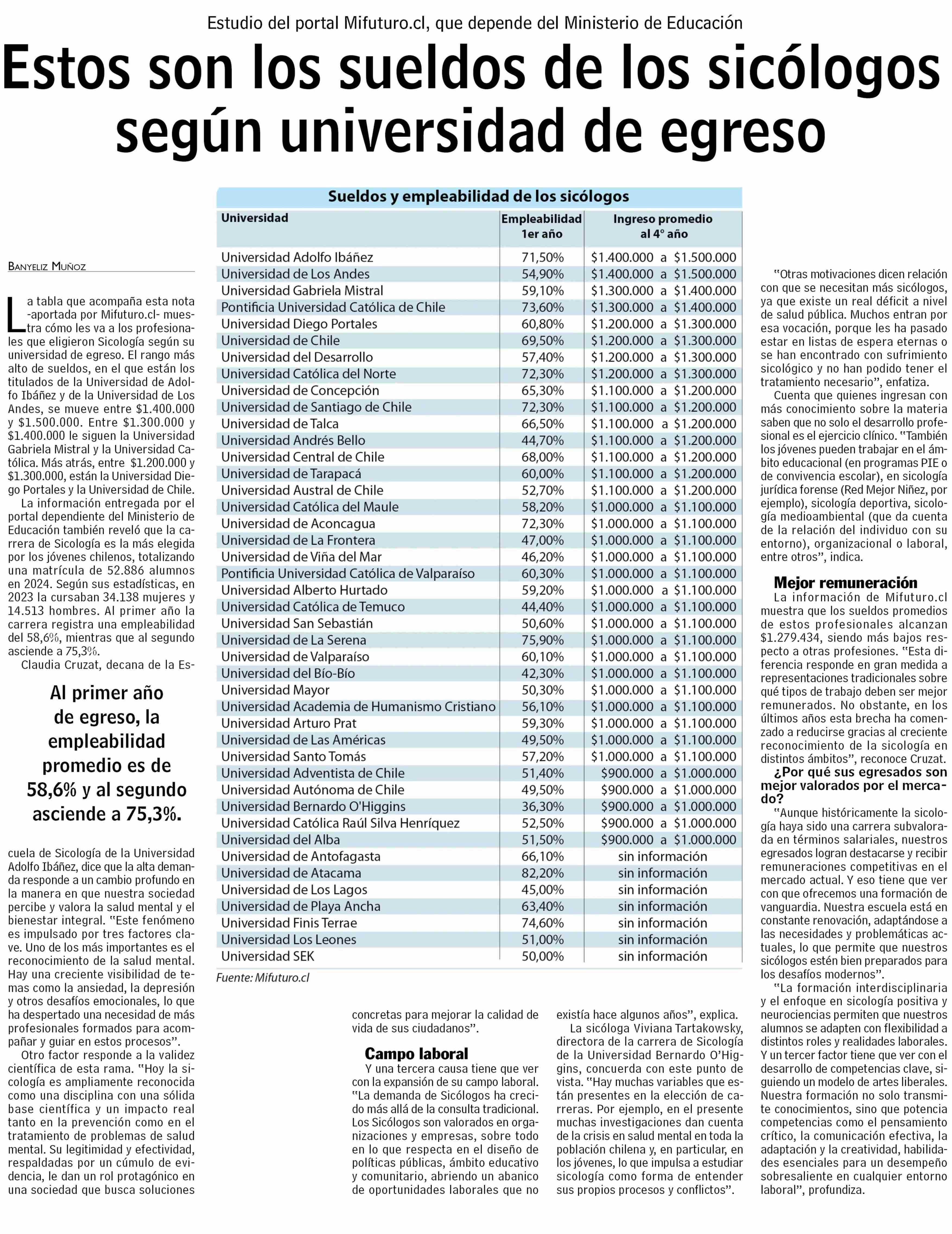 Estos son los sueldos de los sicólogos según universidad de egreso 08-11-2024 Las Últimas Noticias |