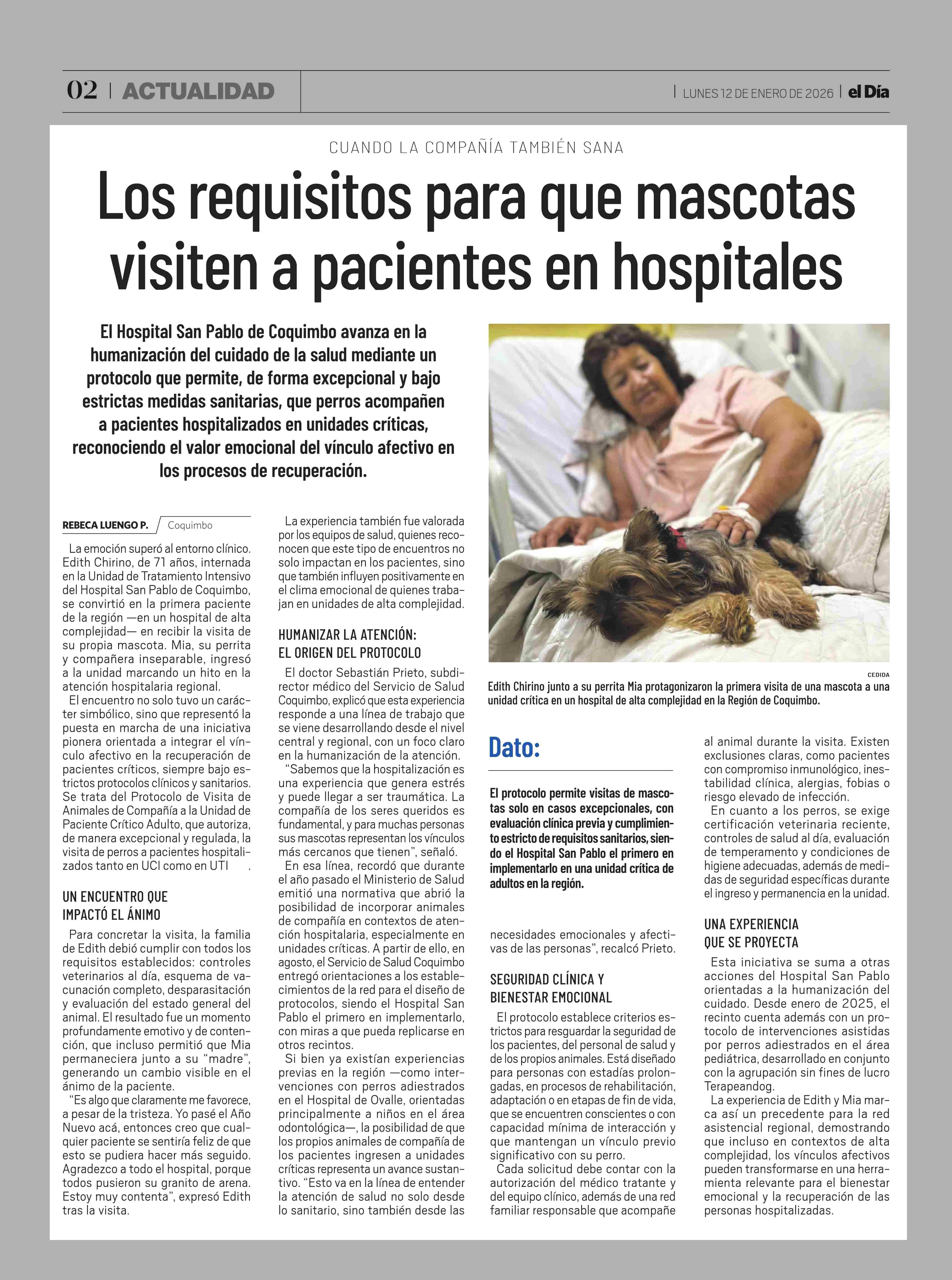 Los requisitos para que mascotas visiten a pacientes en hospitales 12-01-2026 El Día |